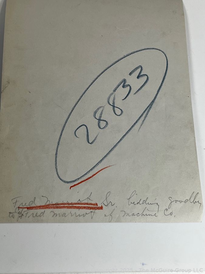 Lot #0365RH: 7.5 x 9.5" Black & White Original Print of Fred Marriot Sr. Bidding Goodbye to Captain Fred Marriot of Machine Co.