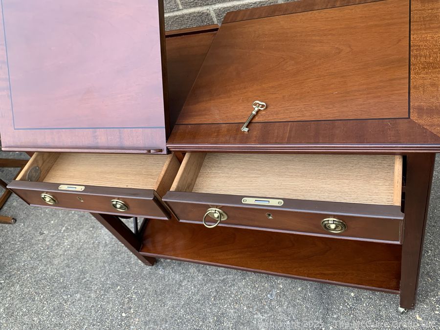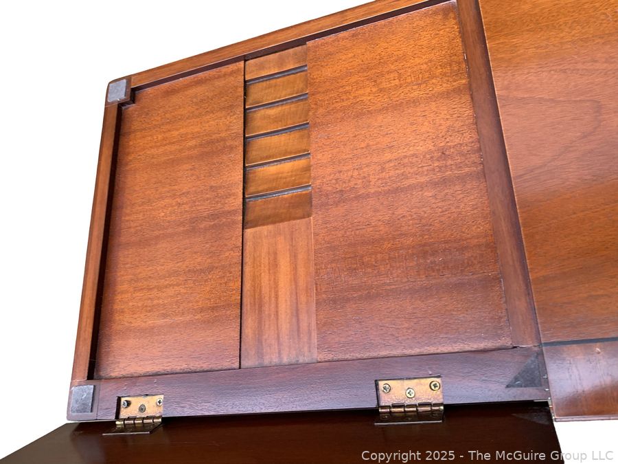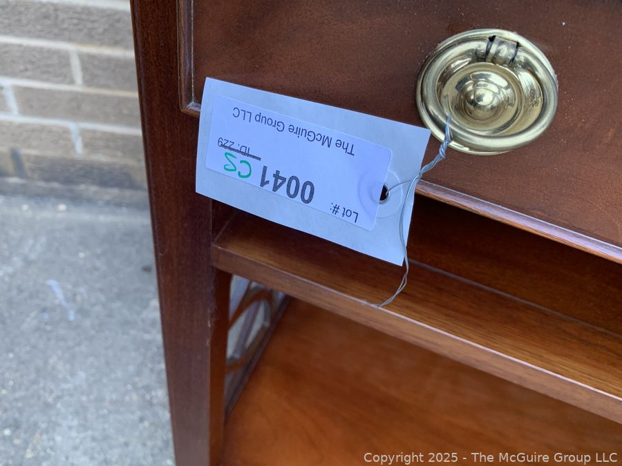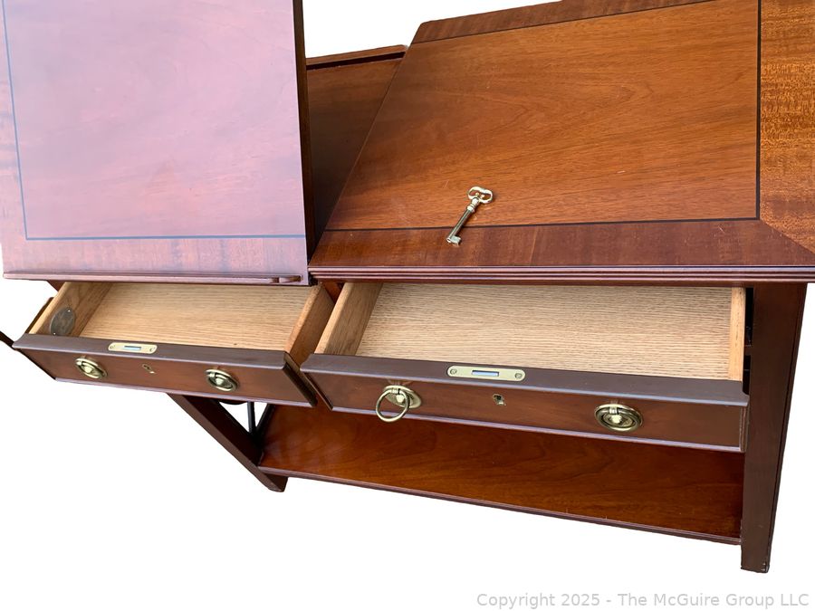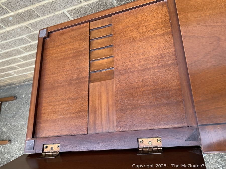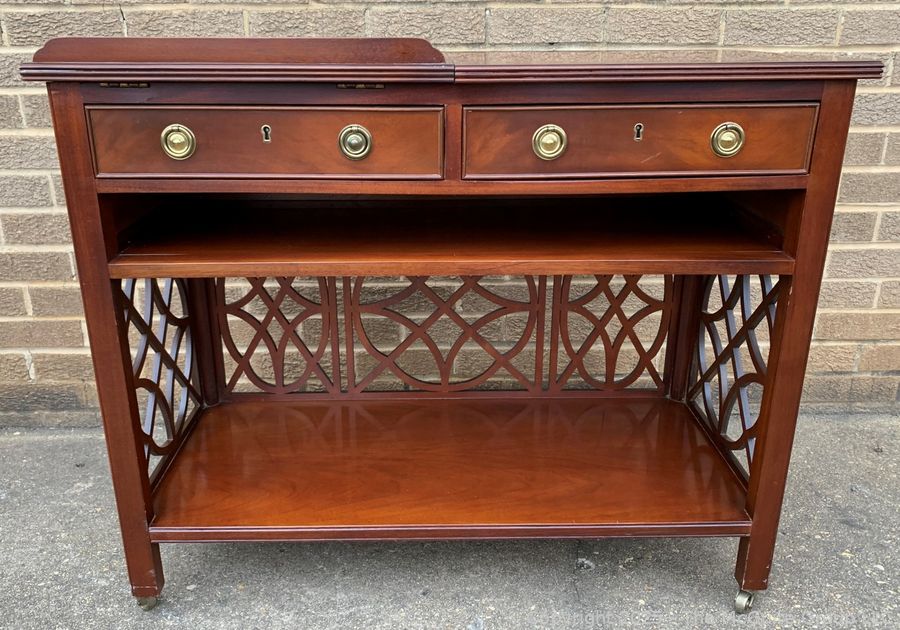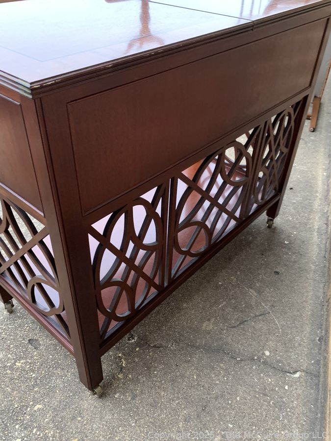 Lot #0041CS: Baker Mahogany Chippendale Style Fretwork Telephone Console Table with Tilt Top. 35"W x 17"D x 29"T