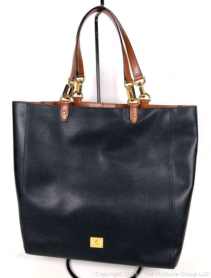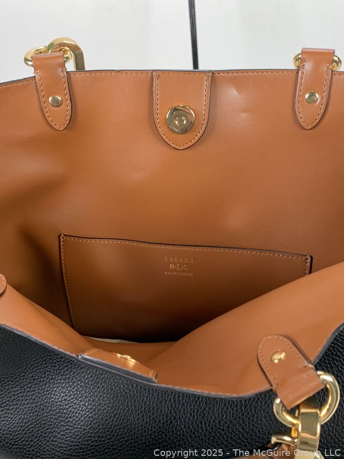 Lot #0190CP: Black Leather Ralph Lauren Hanway Tote Handbag New with Tags