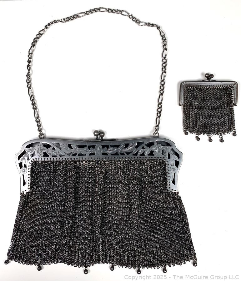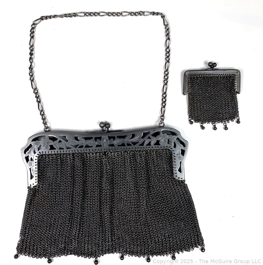 Lot #0163MB: Black Real Gunmetal Chain Maille Mesh Handbag and Coin Purse, Made in France