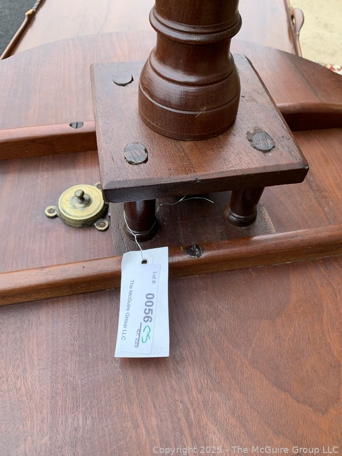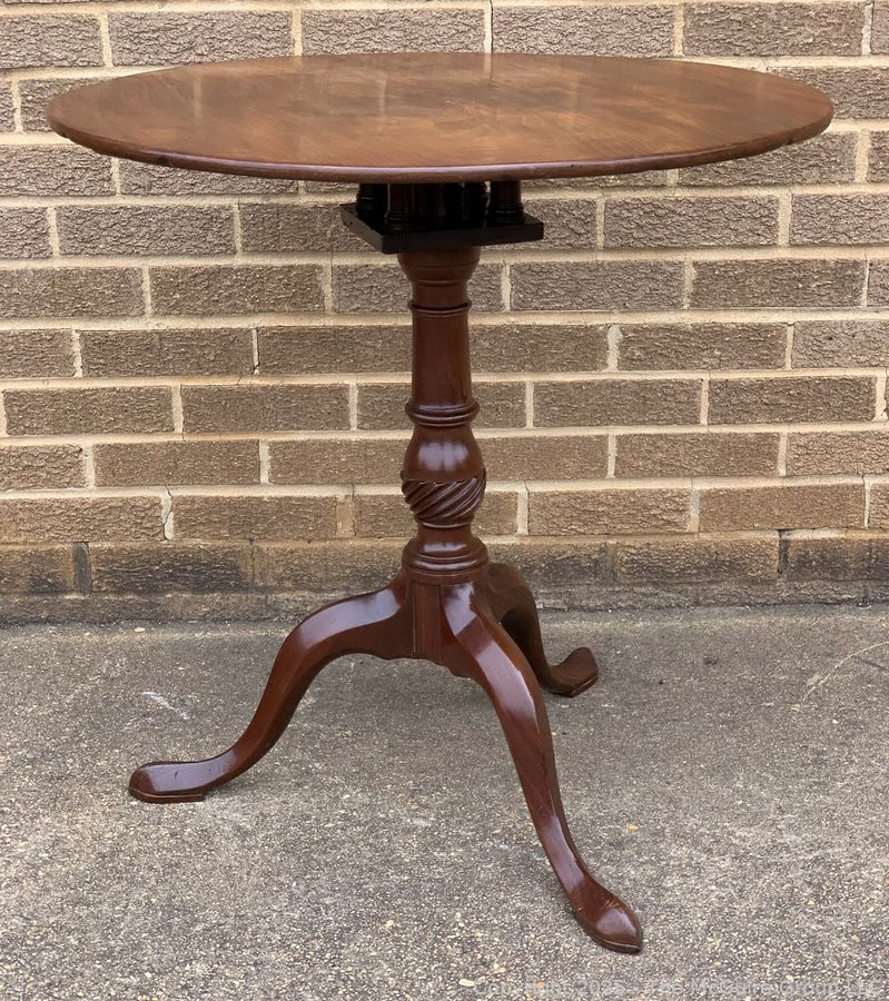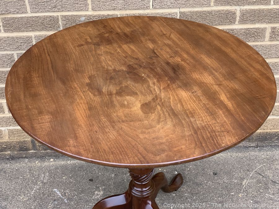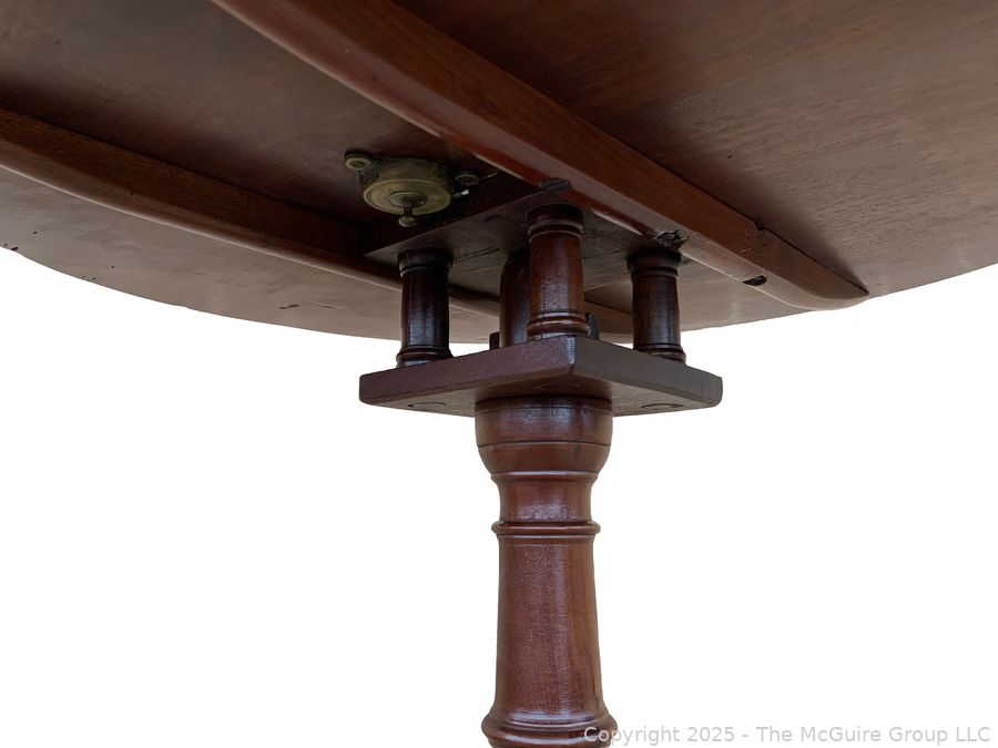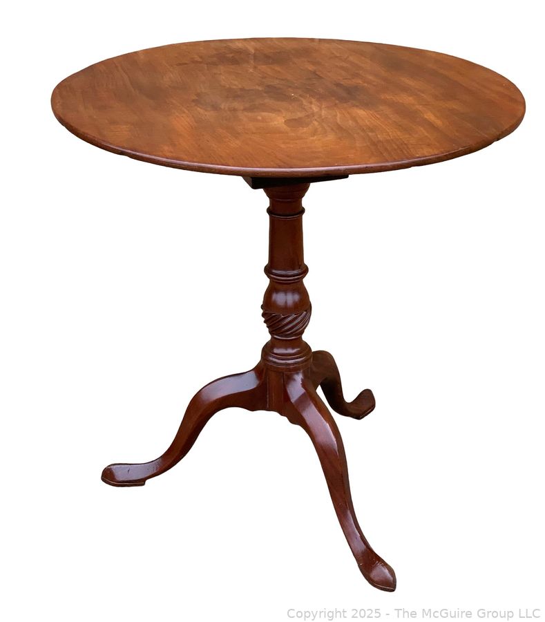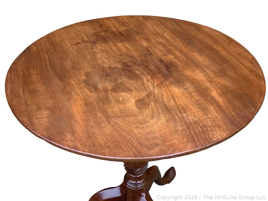 Lot #0056CS: English Queen Anne Tilt Top Mahogany Tea Table on Cabriole Pedestal Base circa 1800 Measures 28"H x 35"W x 28"D