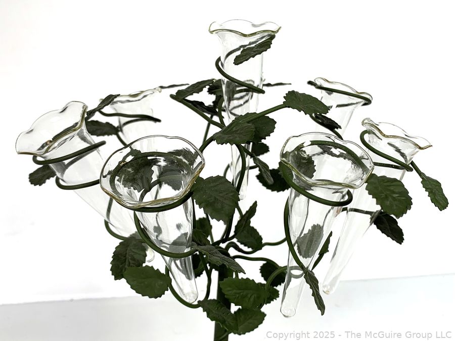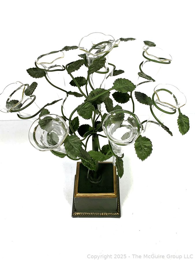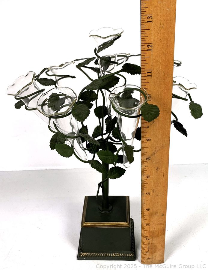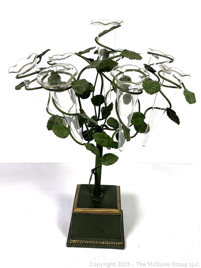 Lot #0296CS: Epergne Tole Rose Tree with Eight (8) Glass Vases