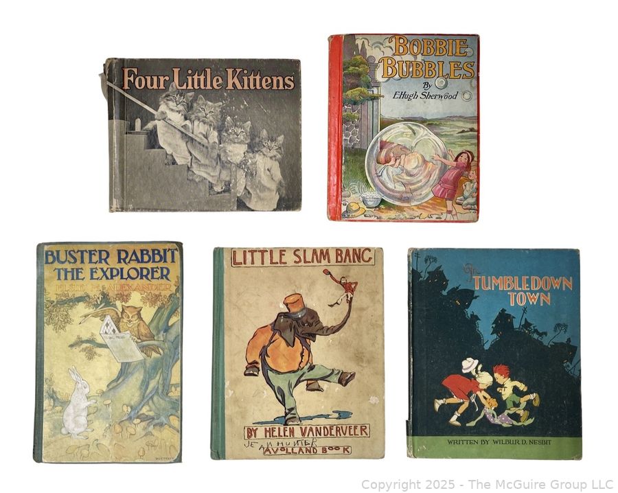 Lot #0181RM: Five (5) Children's Books Including Four Little Kittens, Bobbie Bubbles, Buster Rabbit, Little Slam Bang & Tumbledown Town