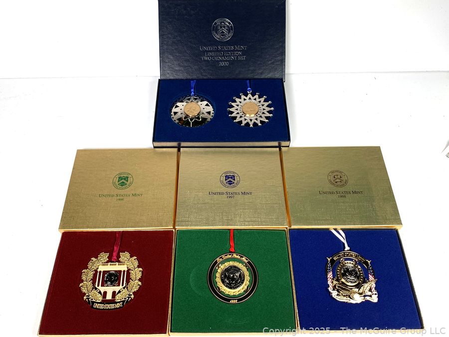 Lot #0281LC: Four (4) US Mint Christmas Ornaments 1996, 1997, 1998 & 2000 in Boxes