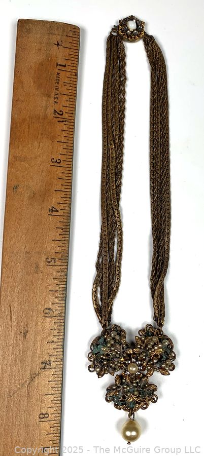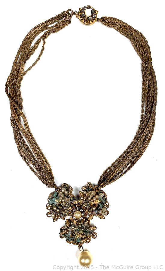 Lot #0223MB: Gilt Gold and Rhinestone Pendant Necklace, Possibly Unsigned Miriam Haskell