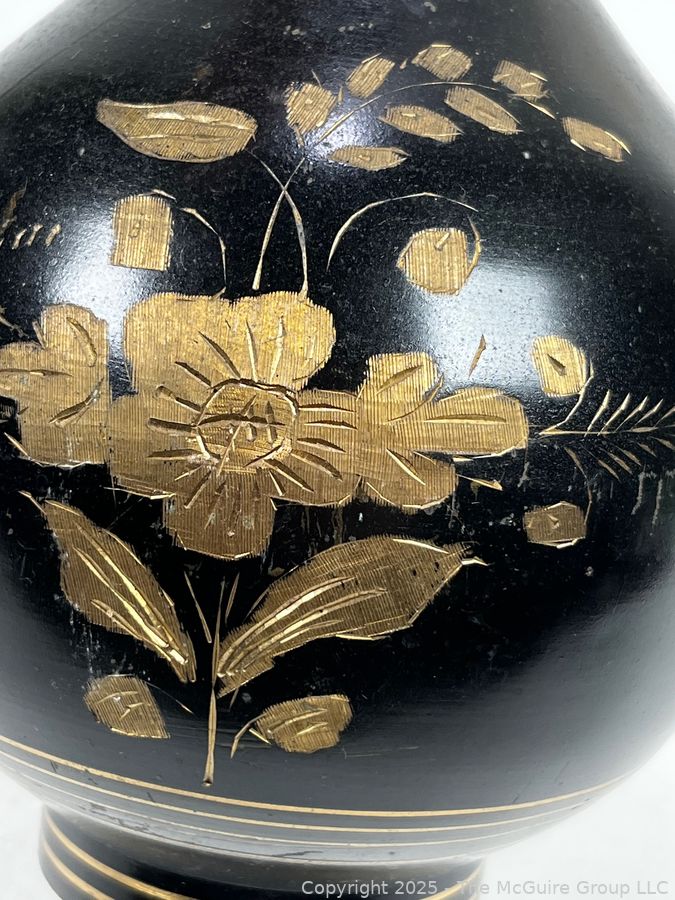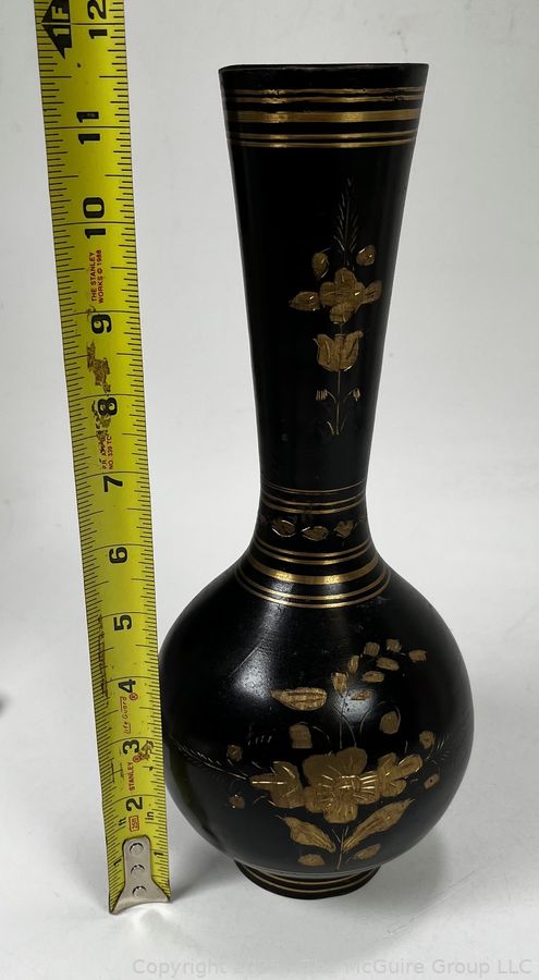 Lot #0334RM: Hand Etched Brass Vase. Measures 11.5" Tall