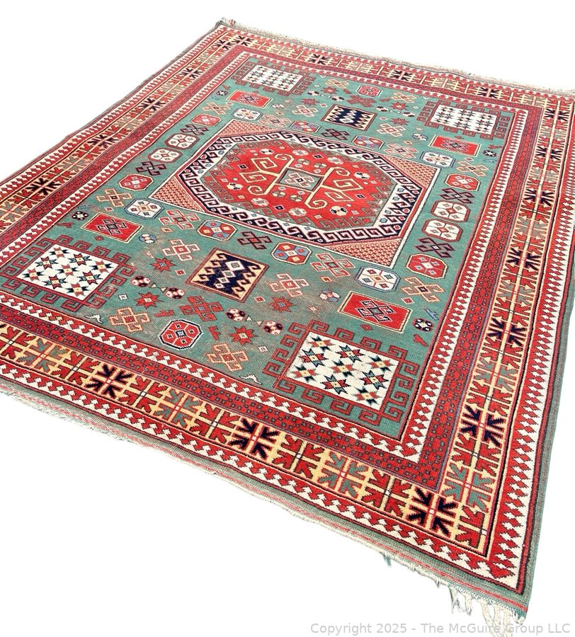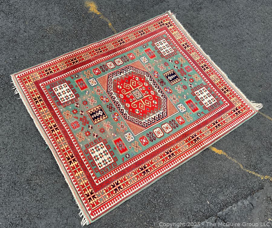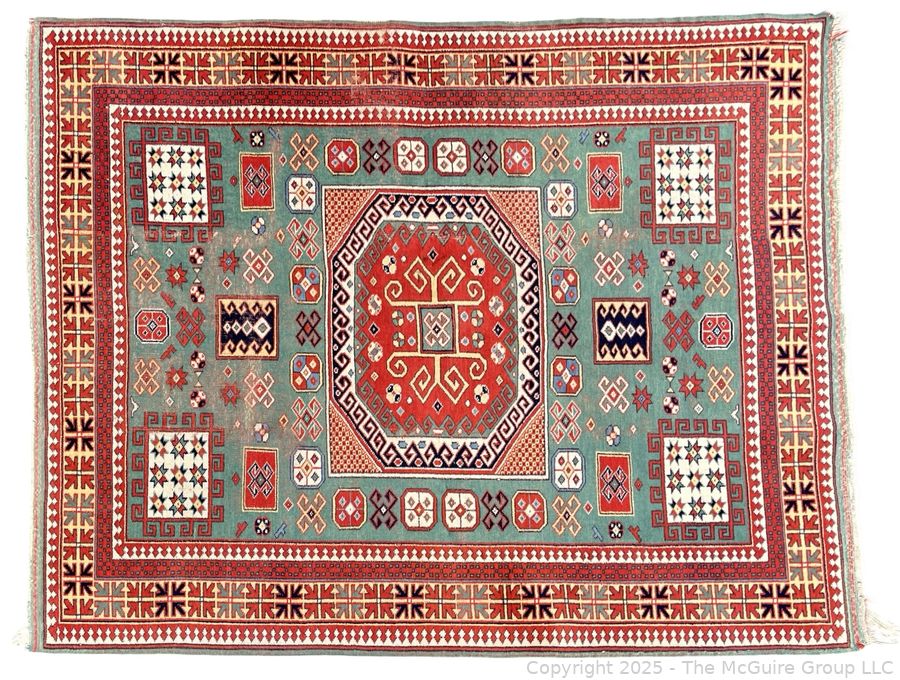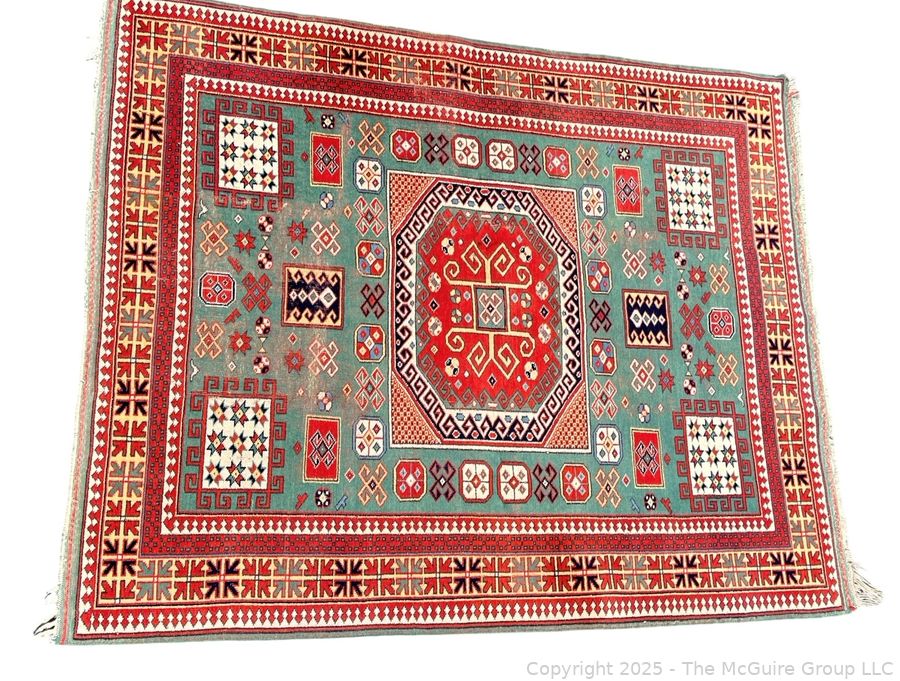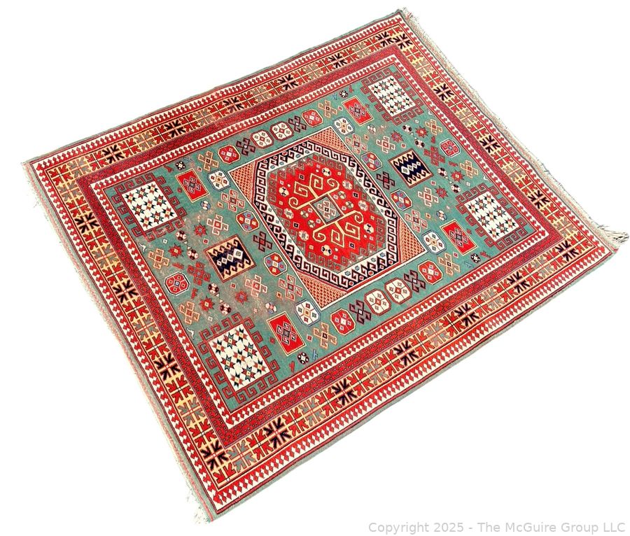 Lot #0038CS: Kazak Karachop Hand Knotted Shirvan Turkish Rug on Red Ground. 5" x 6" (WAS 1400CS)