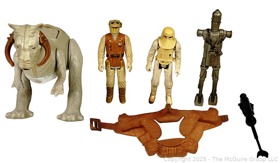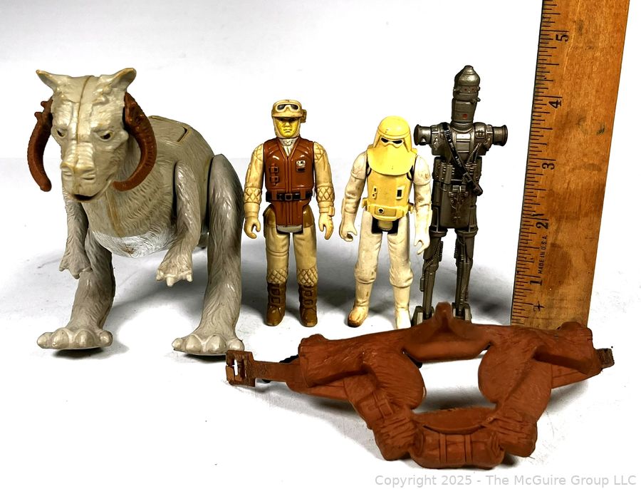 Lot #0162JK: Kenner's Star Wars - 1980 The Empire Strikes Back Figures Including Tauntaun Taun Taun with Saddle, Hoth Rebel, Snow Trooper & Bounty Hunter Droid.