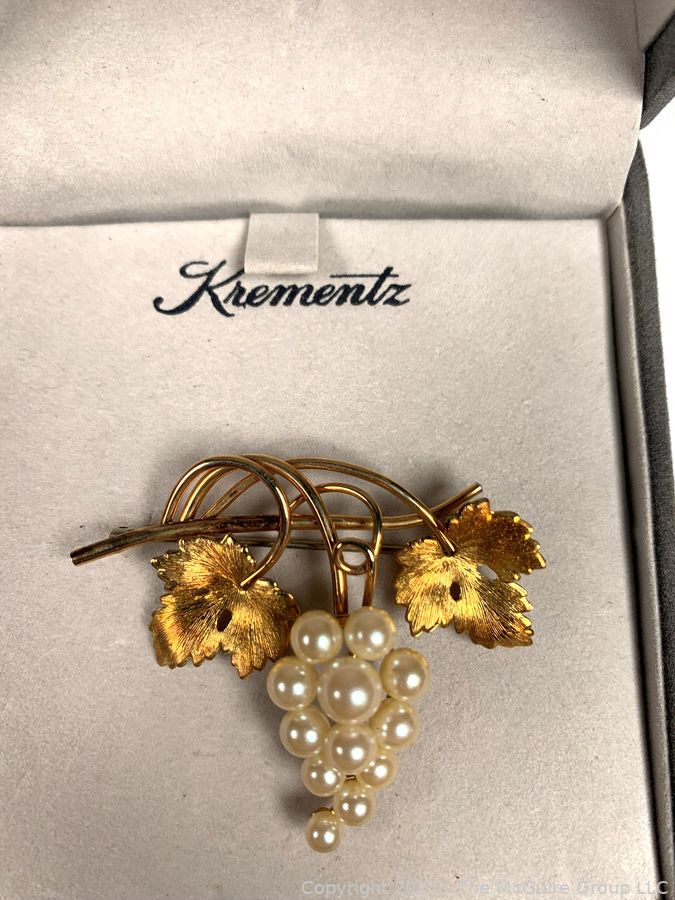 Lot #0105SS: Krementz Cluster Vine Brooch with Box