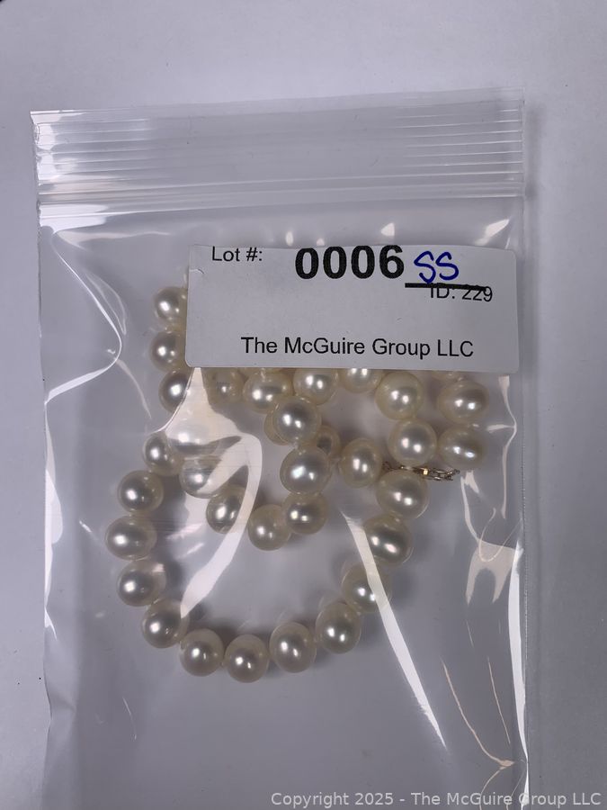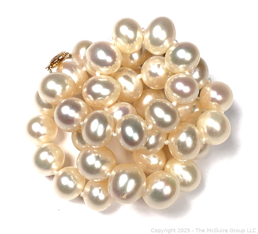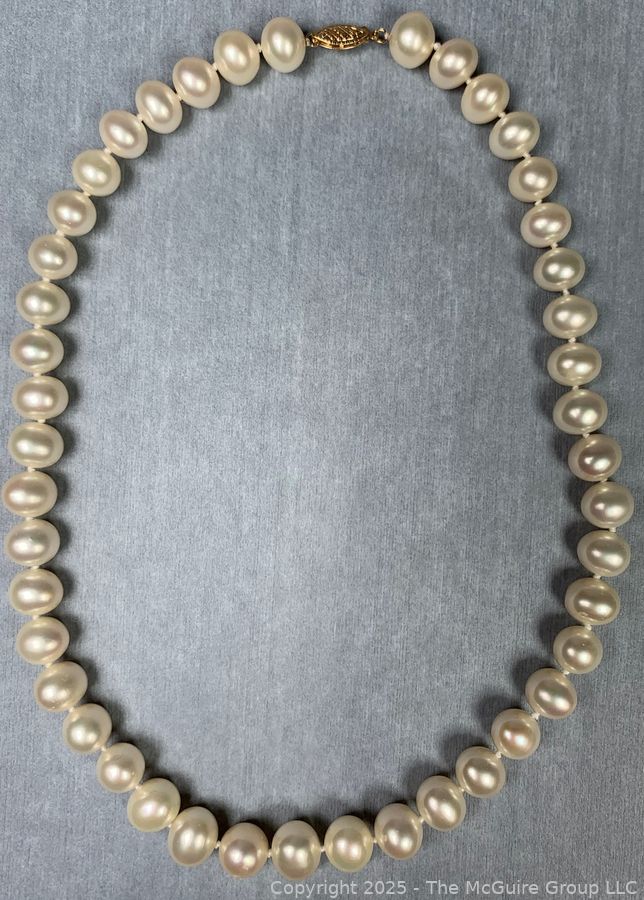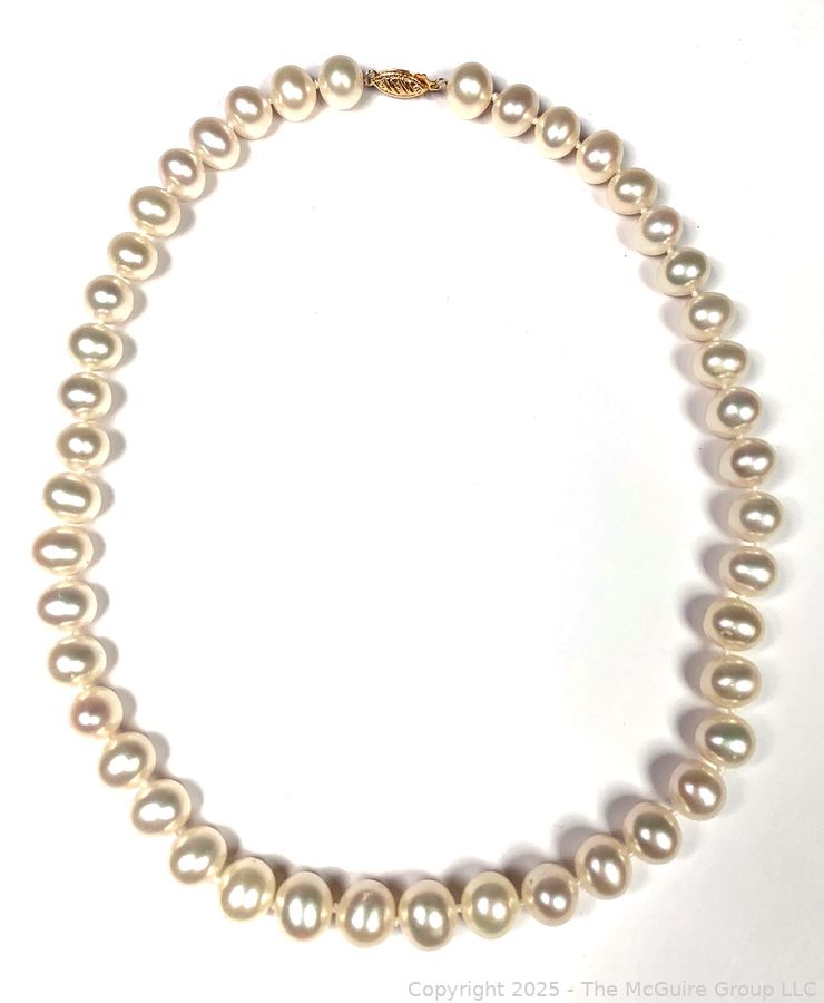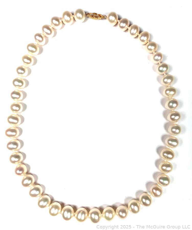 Lot #0006SS: Large 10mm Cultured Pearl and 14k Gold Clasp Necklace, 17"