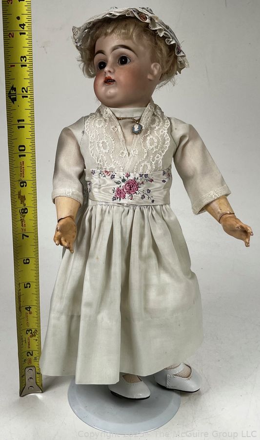 Lot #0355RM: Late 19th C German Bisque Doll. Head Marked "Made in D. Germany 8 129". Measures 14" Tall