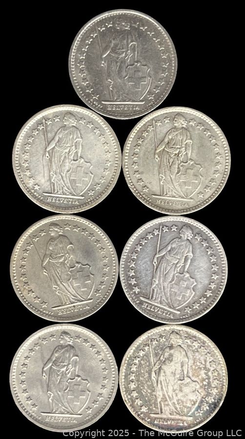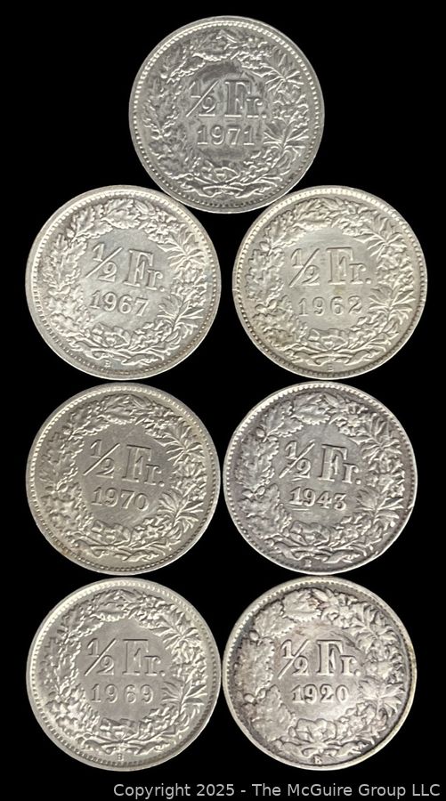 Lot #0110CM: Lot of Seven (7) Swiss 1/2 Fr. Silver Coins, Various Dates