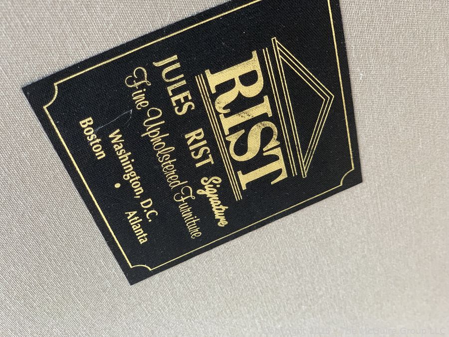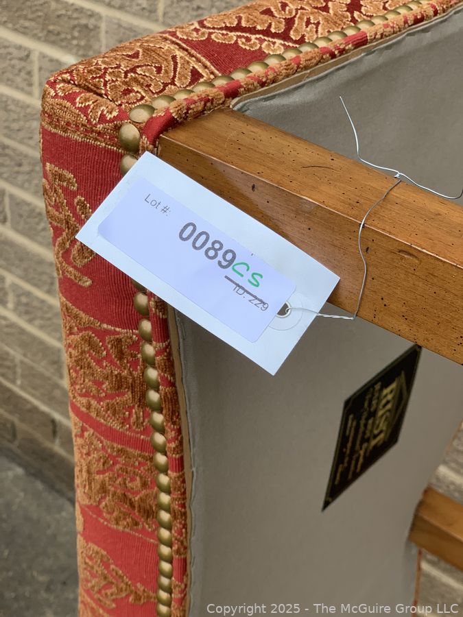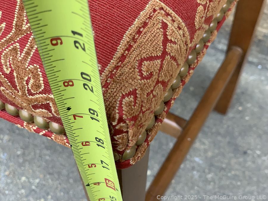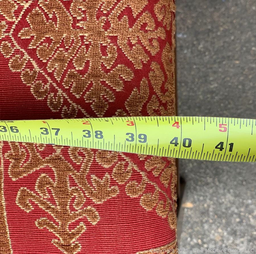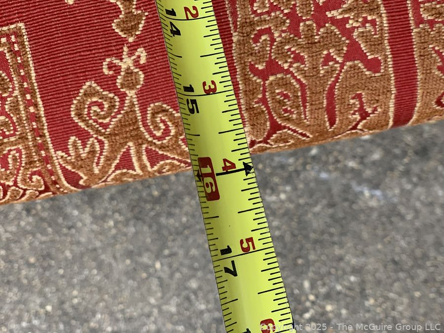Lot #0089CS: Mahogany Double Saddle Bench in Red Chinoiserie Upholstery by Jules Rist. 39"W x 15"D x 20"H