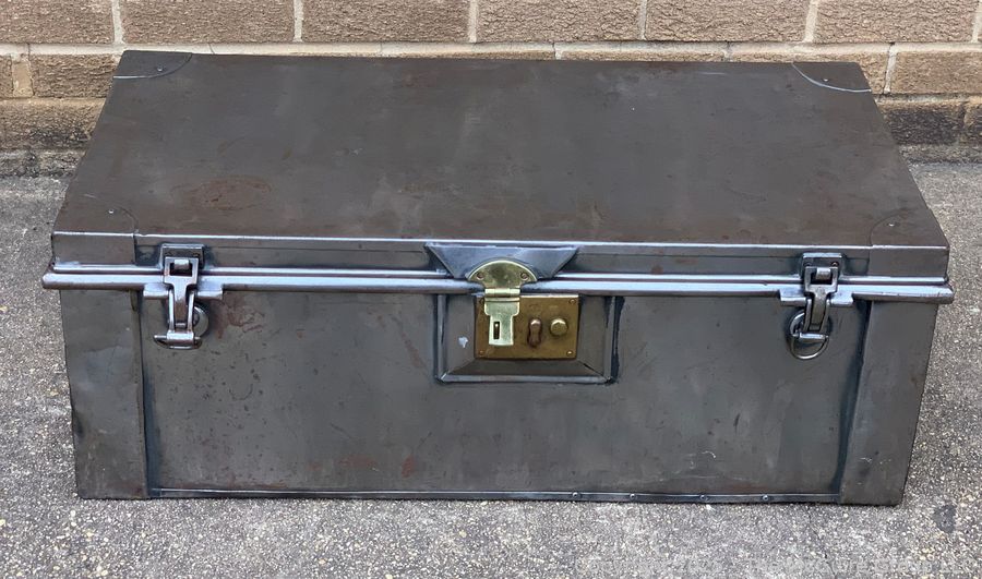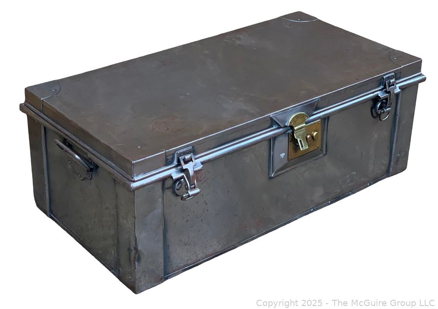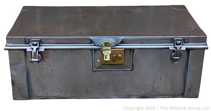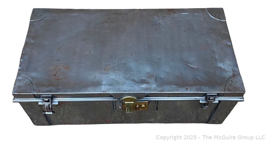 Lot #0068CS: Metal Foot Locker Trunk with Brass Latch