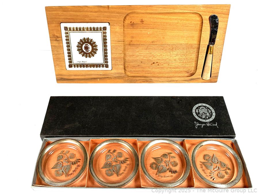 Lot #0226MB: Mid Century Set of Four (4) Georges Briard Glass Coasters in Box and Cheese Tray