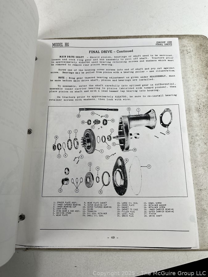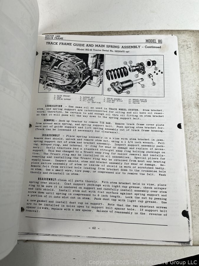 Lot #0134RM: OLIVER Instruction Manual for "HG" Crawler Tractor (In Binder)