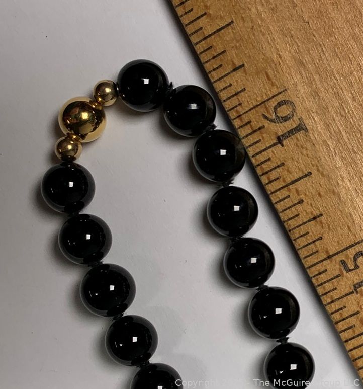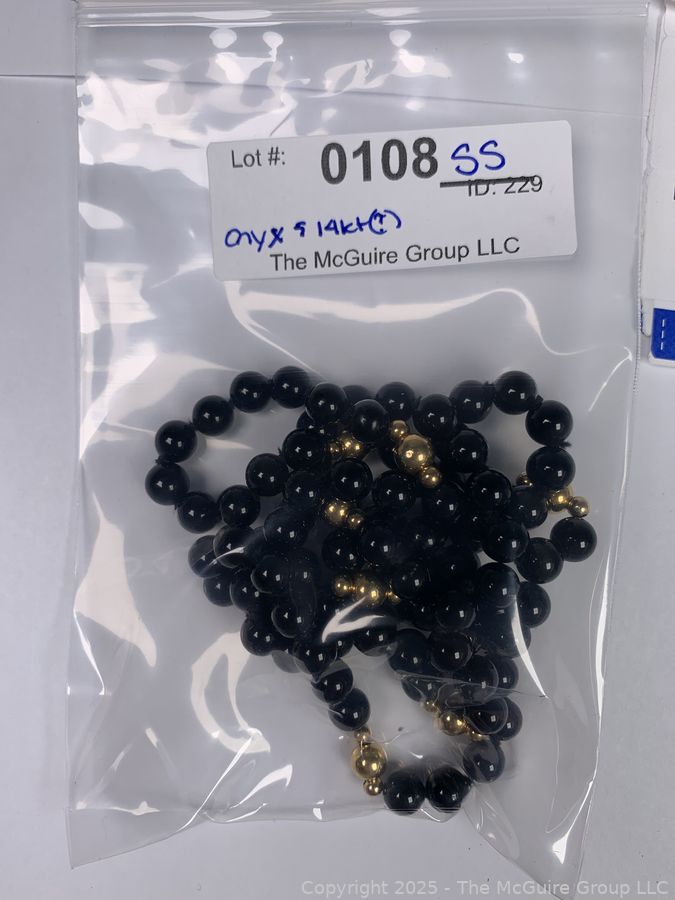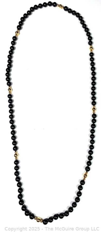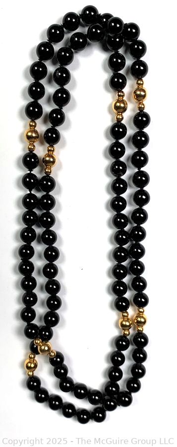 Lot #0108SS: Onxy Opera Length Bead Necklace with Gold Bead Spacers