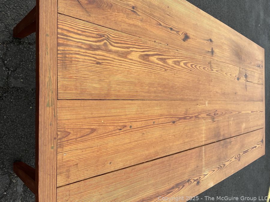Lot #0035CS: Primitive Pine Farm House Table Made from 18th Century Floor Boards. 81"L x 39"W x 29"H