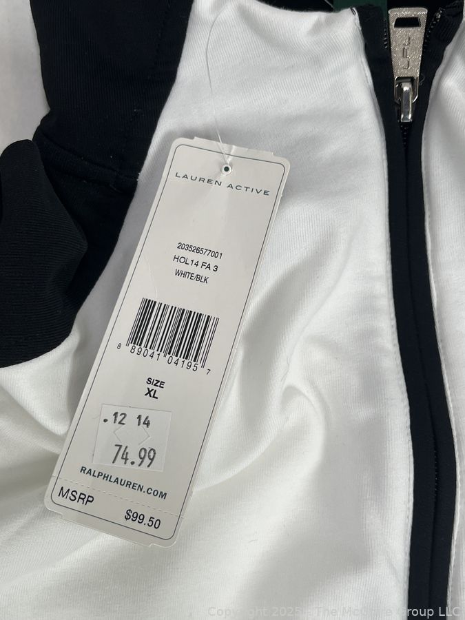 Lot #0148CP: Ralph Lauren White Active Track Jacket Full Zip, New with Tags, XL