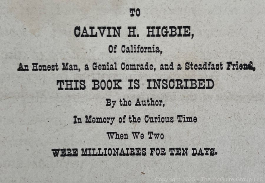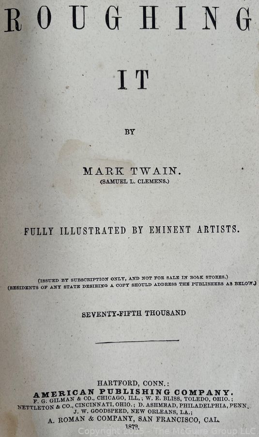 Lot #0996: Roughing It by Mark Twain (Samuel Clemens) 1879 Edition, Missing Cover.