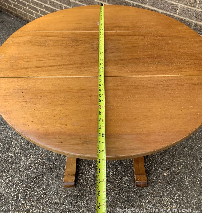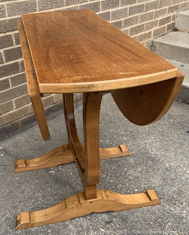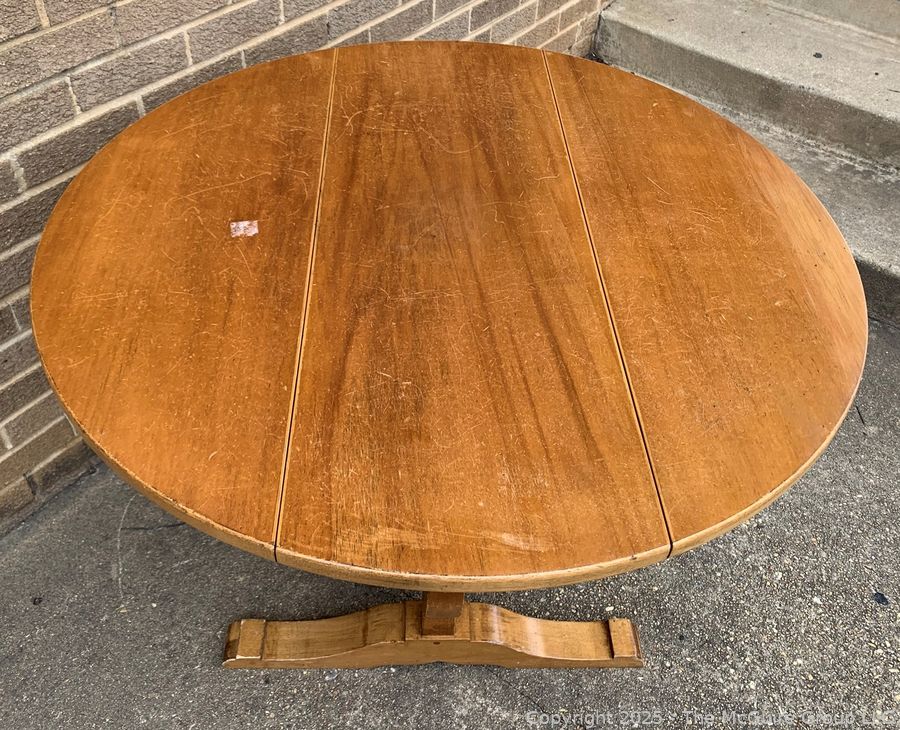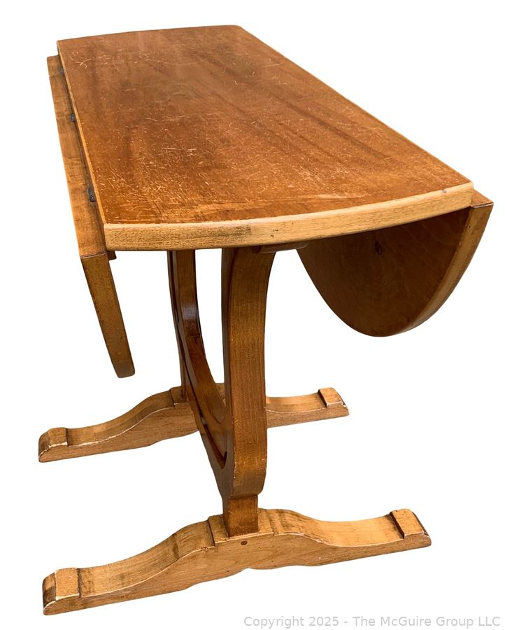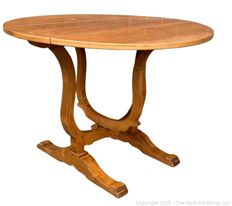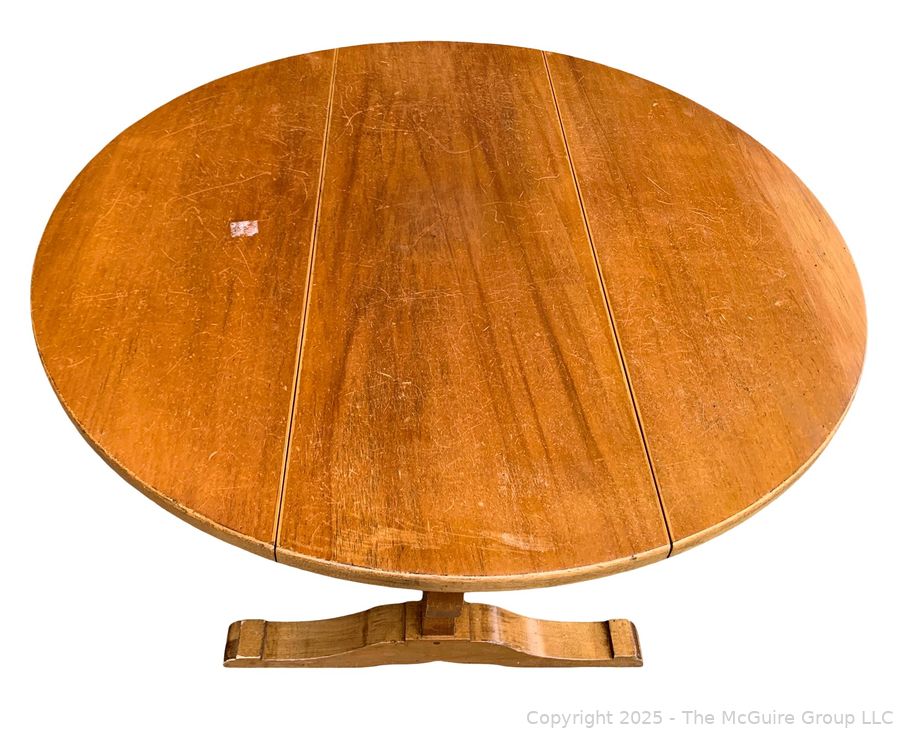 Lot #0083CS: Round Drop Leaf Coaching Table with Lyre-Shaped Swivel Supports. 36" diameter