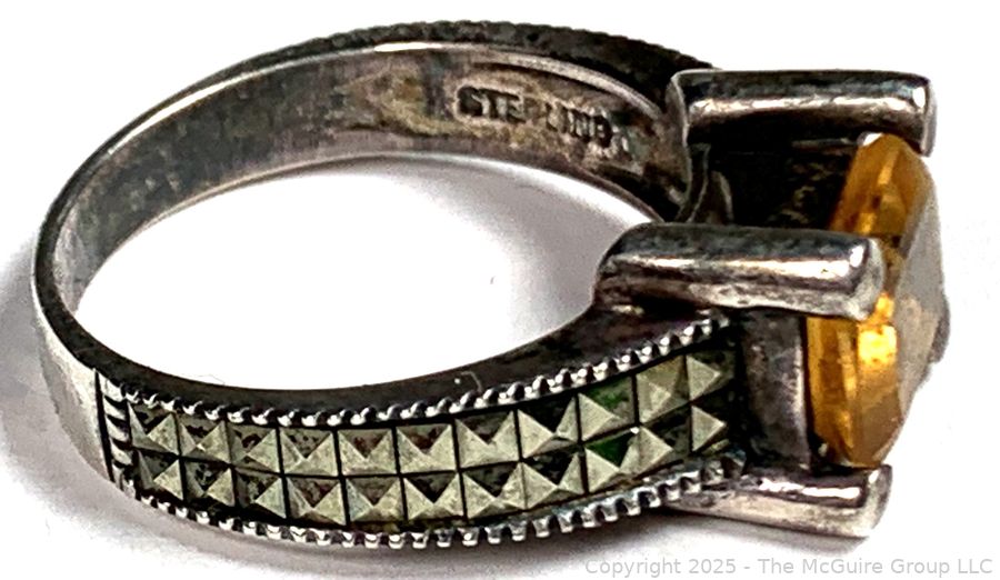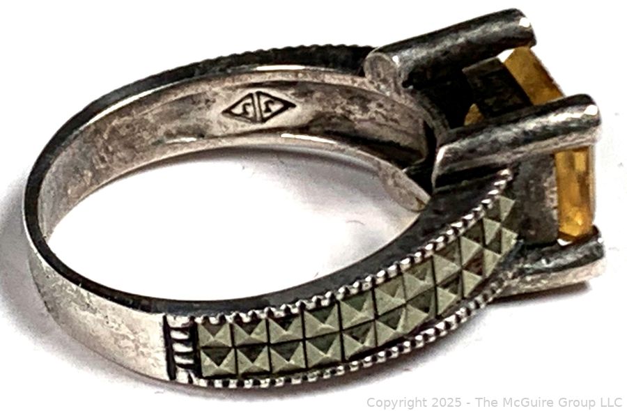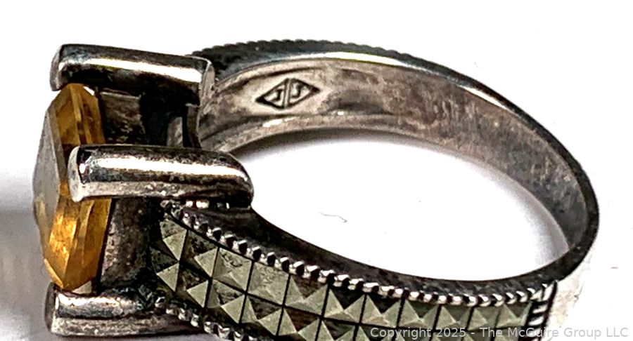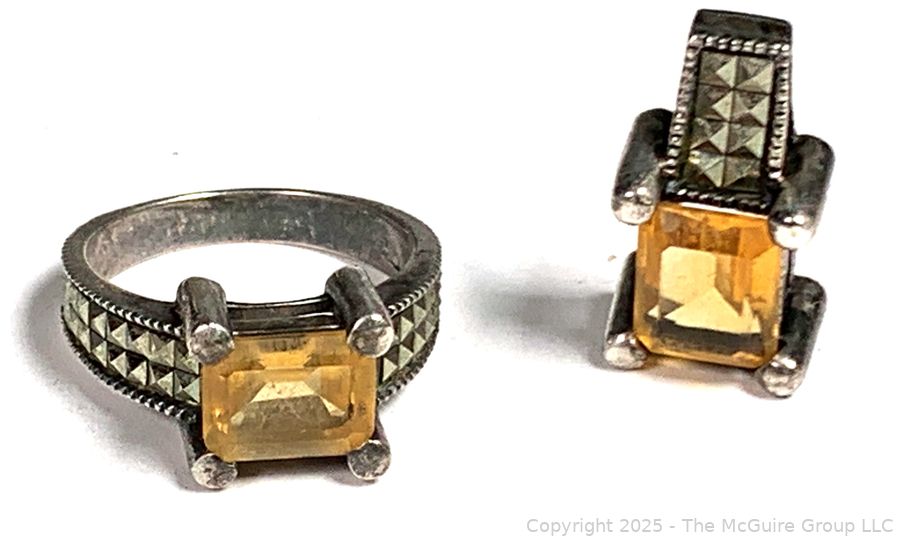 Lot #0191SS: Sterling Silver, Marcasite and Citrine Ring and Matching Pendant by Judith Jack