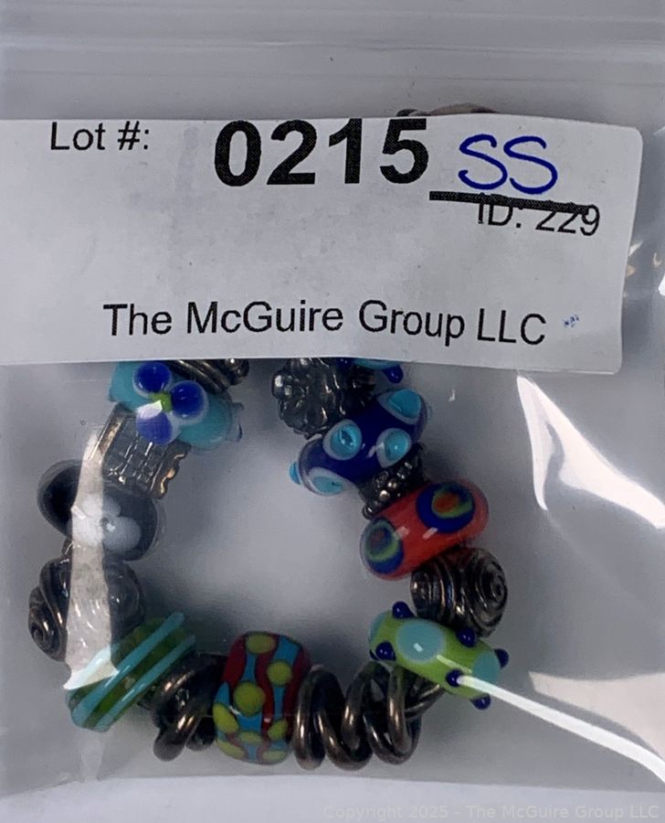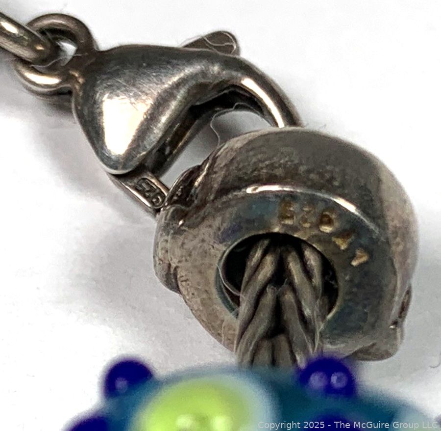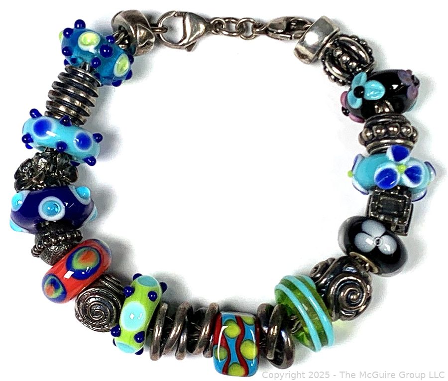 Lot #0215SS: Sterling Silver with Hand Blown Art Glass Bead Bracelet