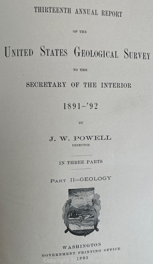 Lot #1040RM: Thirteenth Annual Report of the US Geological Survey 1891-92 Part 2 Geology by J W POWELL