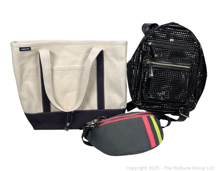 Lot #0343CP: Three (3) Bags Including Fanny Pack, Back Pack and Canvas Totes, Some New with Tags