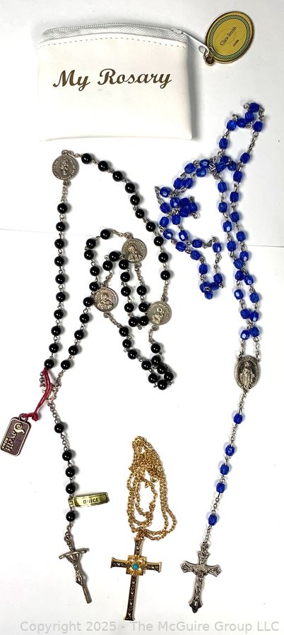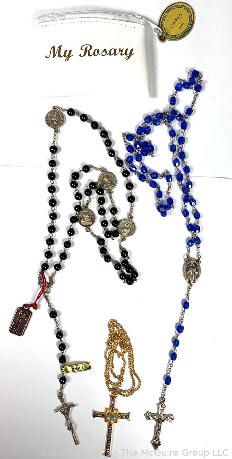 Lot #0221SS: Two (2) Crystal Rosaries, Religious Medal and Necklace