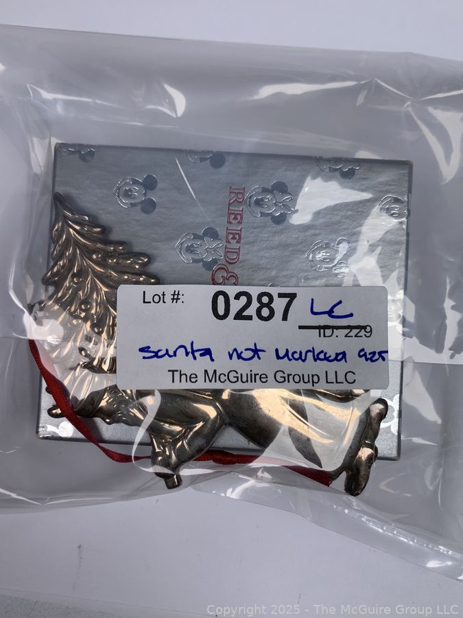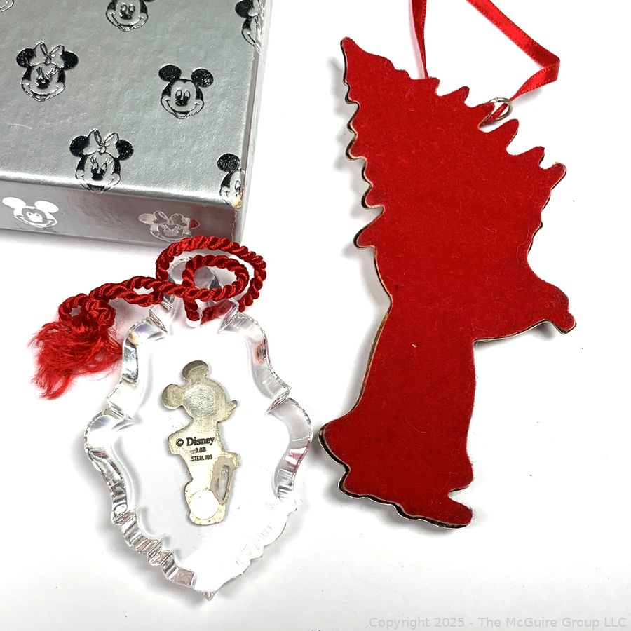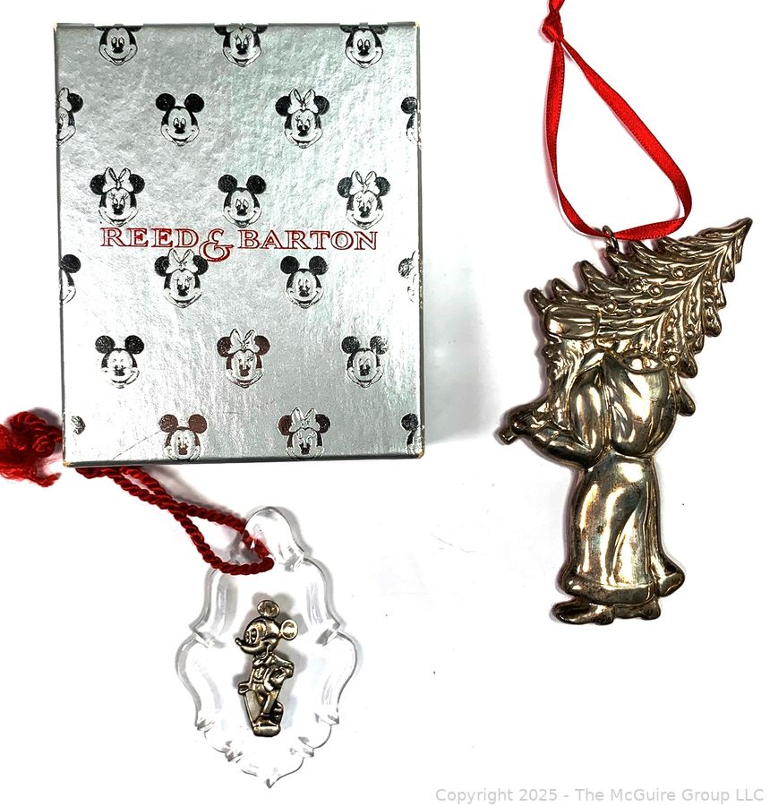 Lot #0287LC: Two (2) Sterling Silver Christmas Ornaments Including Reed & Barton Mickey Mouse Disney and Santa with Tree (Unmarked)