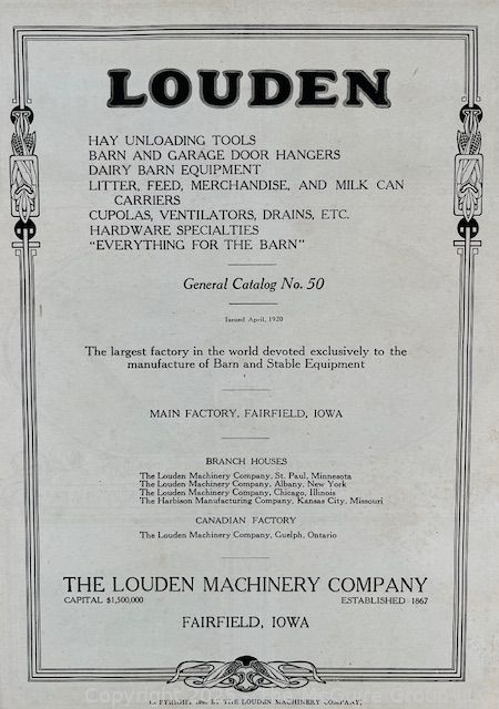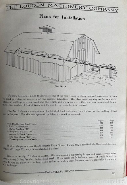 Lot #1023RM: Two Catalogs: 1919 The Jamesway No. 27 How to Build and Equip a Practical up to date Dairy Barn, and 1930 The Louden Machinery Company, Fairfield Iowa. 1930