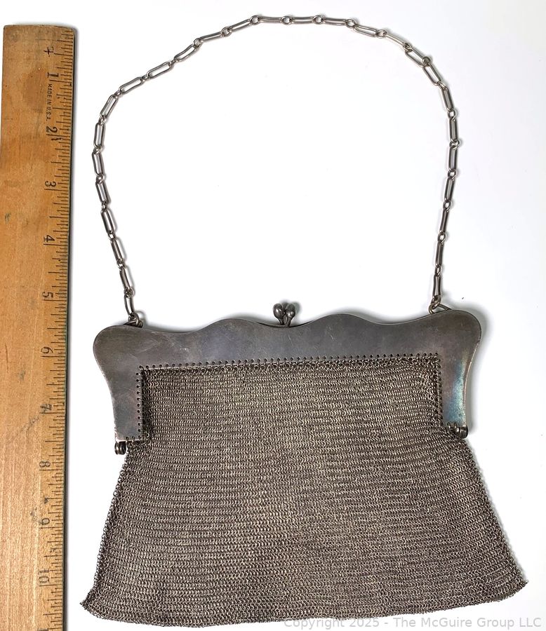 Lot #0045MB: Victorian Sterling Silver Chain Maille Mesh Handbag. 251 grams