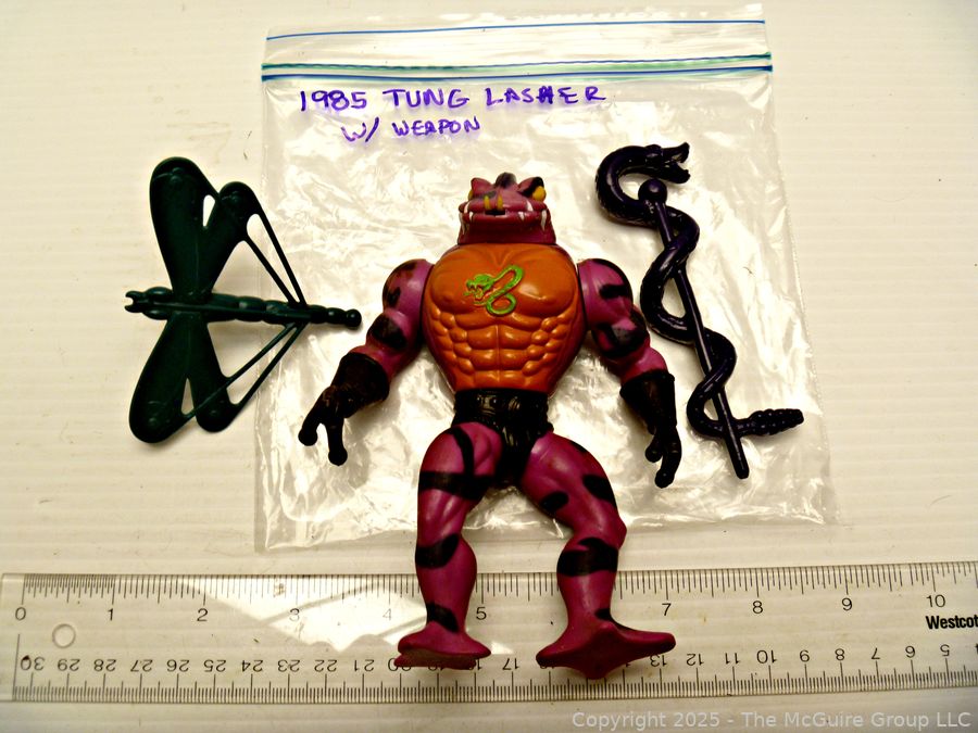 Lot #0291JK: Vintage Toys: Masters of the Universe (MOTU): TUNG LASHER Action Figure and Weapons