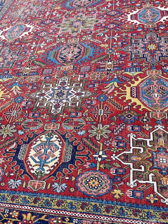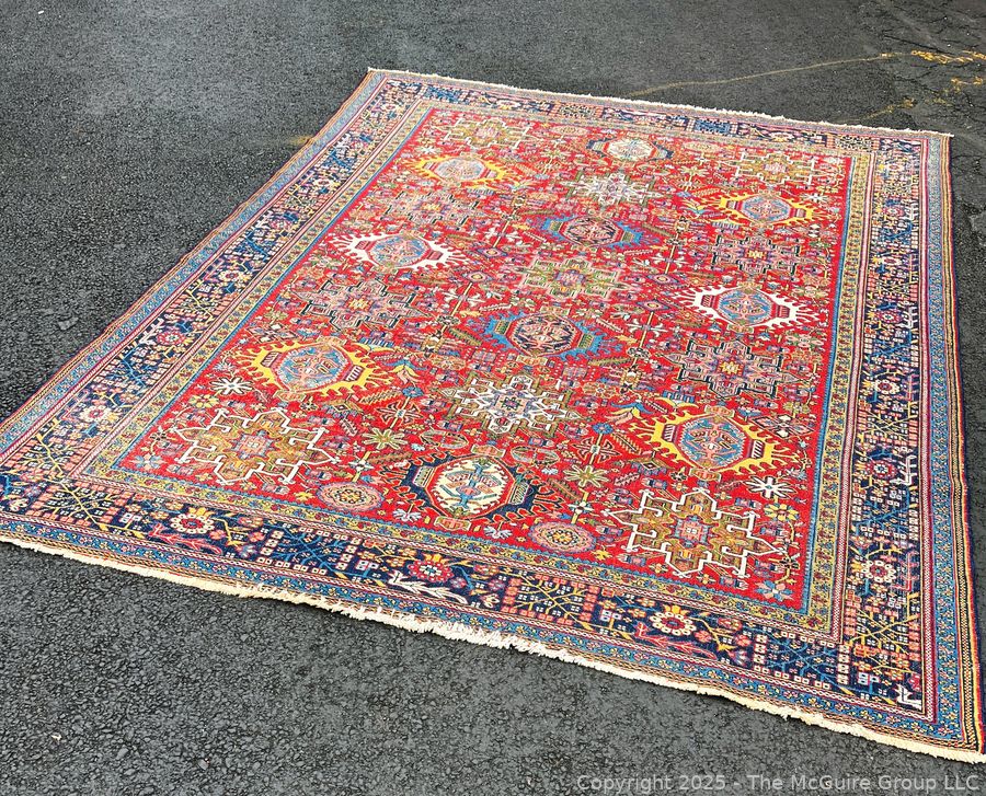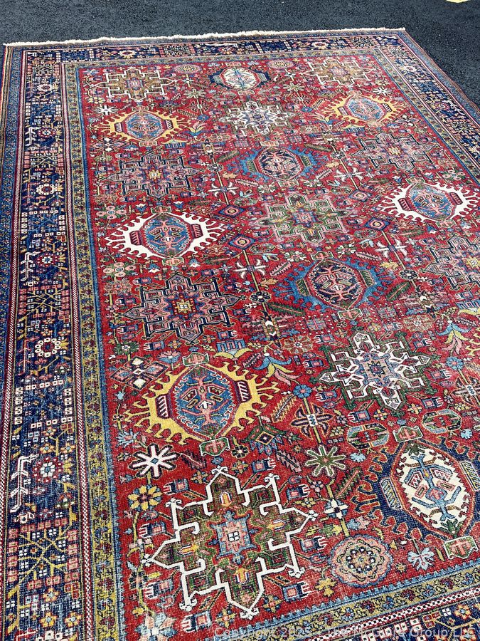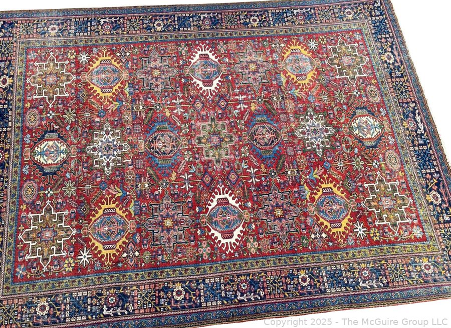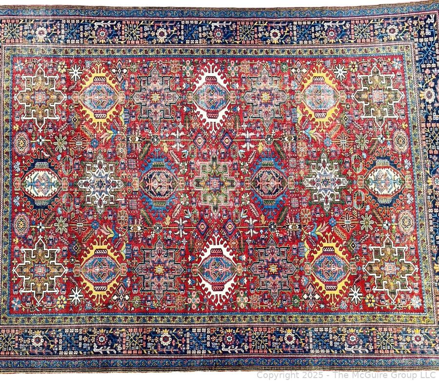 Lot #0007CS: Wool Hand Knotted Persian Gharajeh Rug on Red Ground. 10.8' x 8.1' (WAS 1402CS)