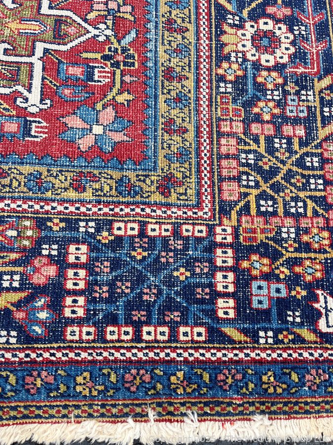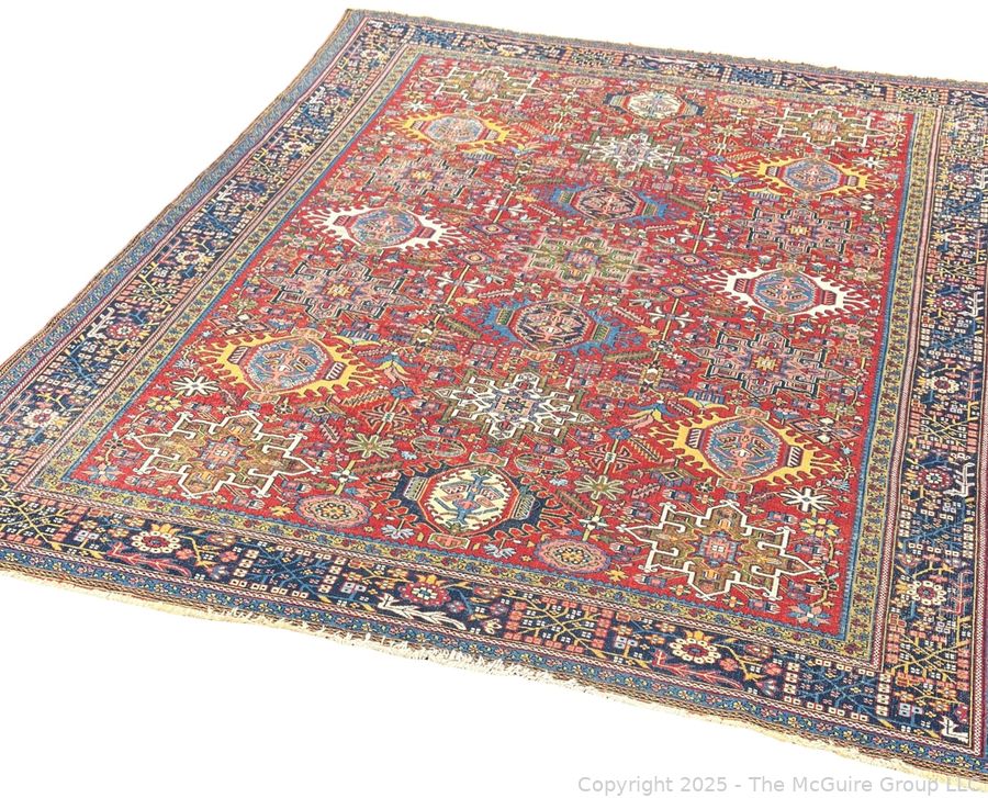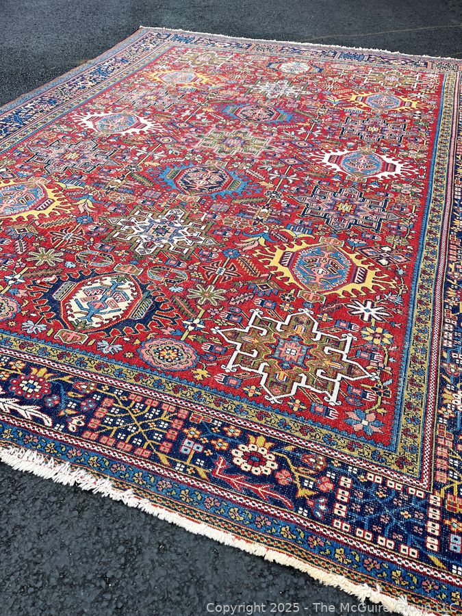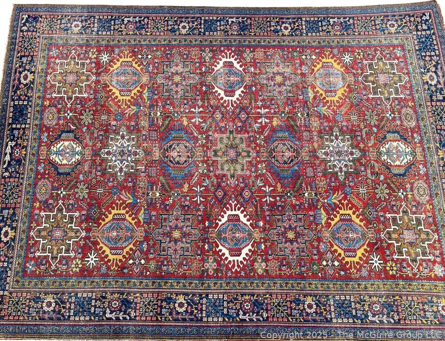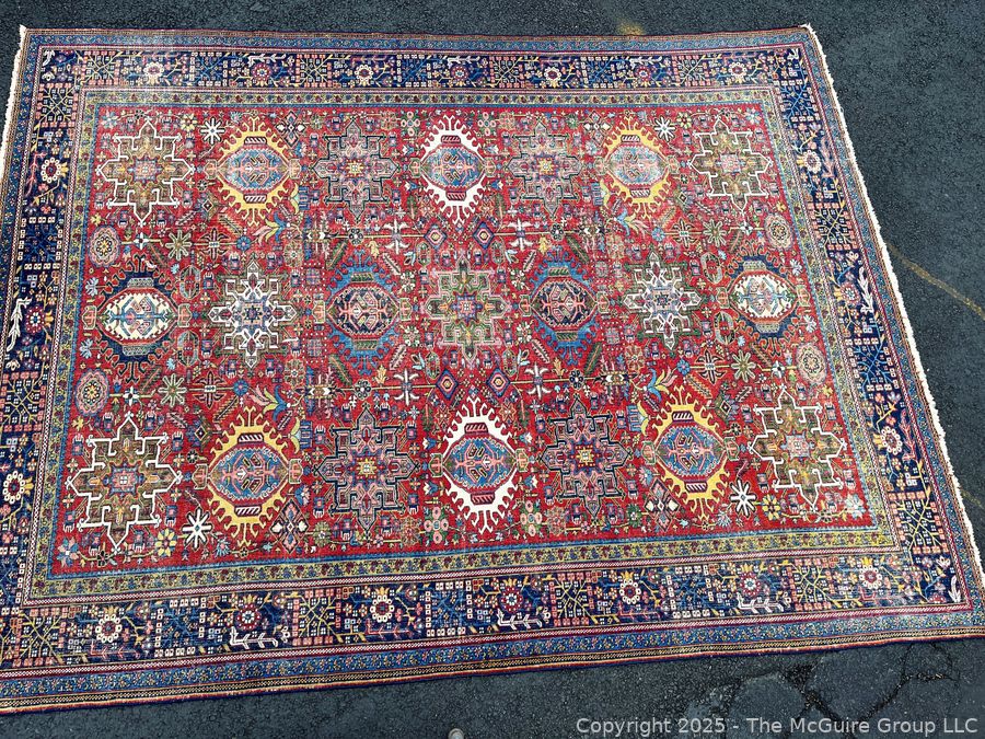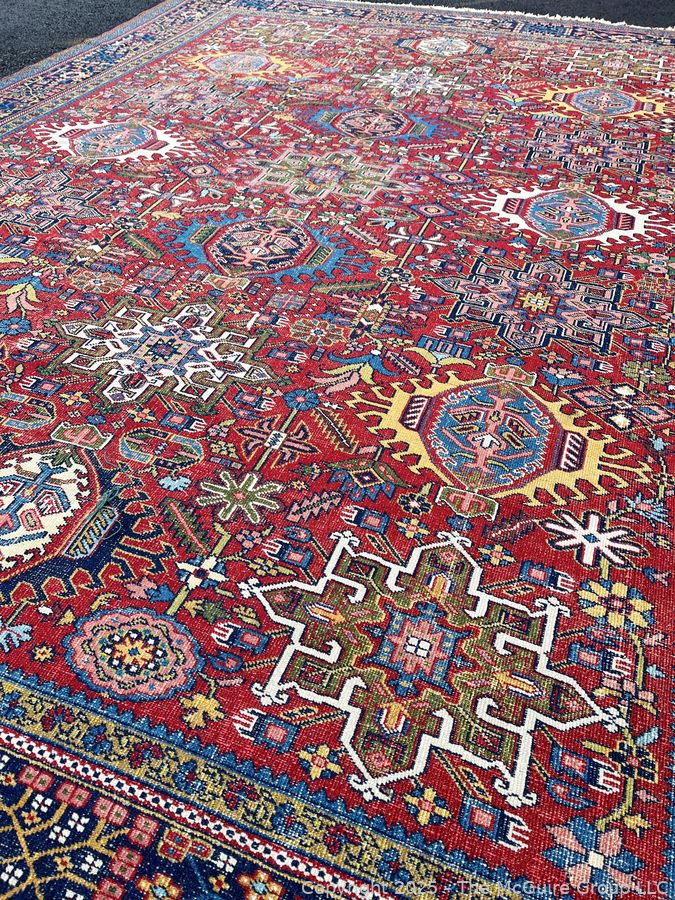 Lot #0007CS: Wool Hand Knotted Persian Gharajeh Rug on Red Ground. 10.8' x 8.1' (WAS 1402CS)