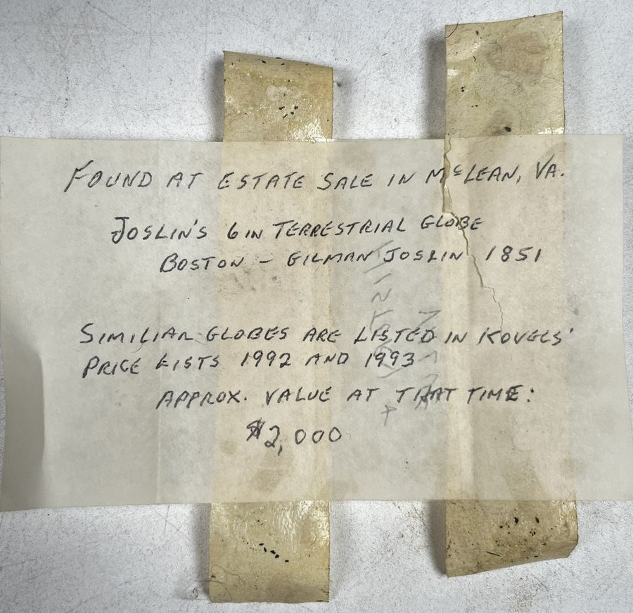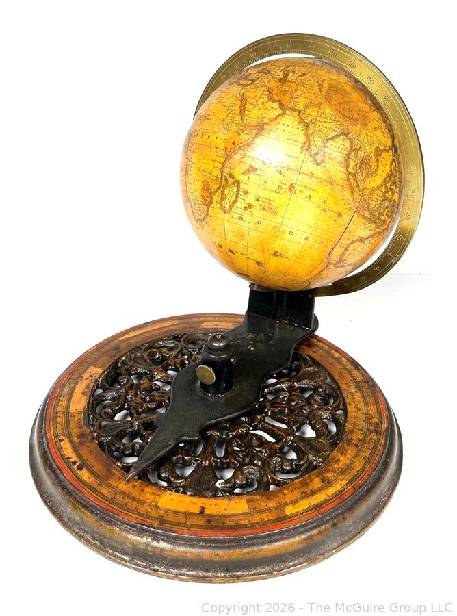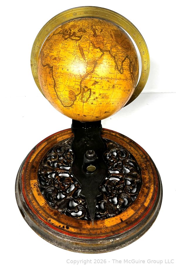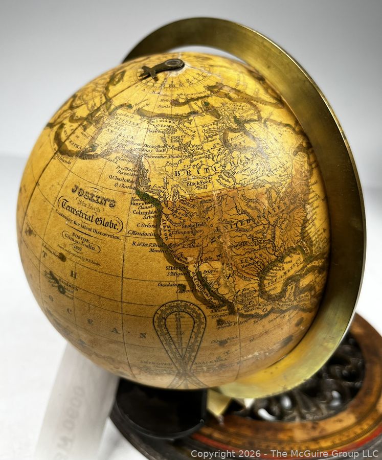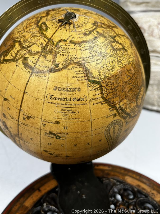 Lot #0002CPA: 1851 Gilman Joslin's 6" Solar Telluric Terrestrial Mechanical Globe on Cast Iron Base (WAS 0090CP)
