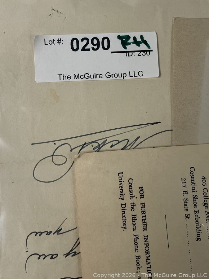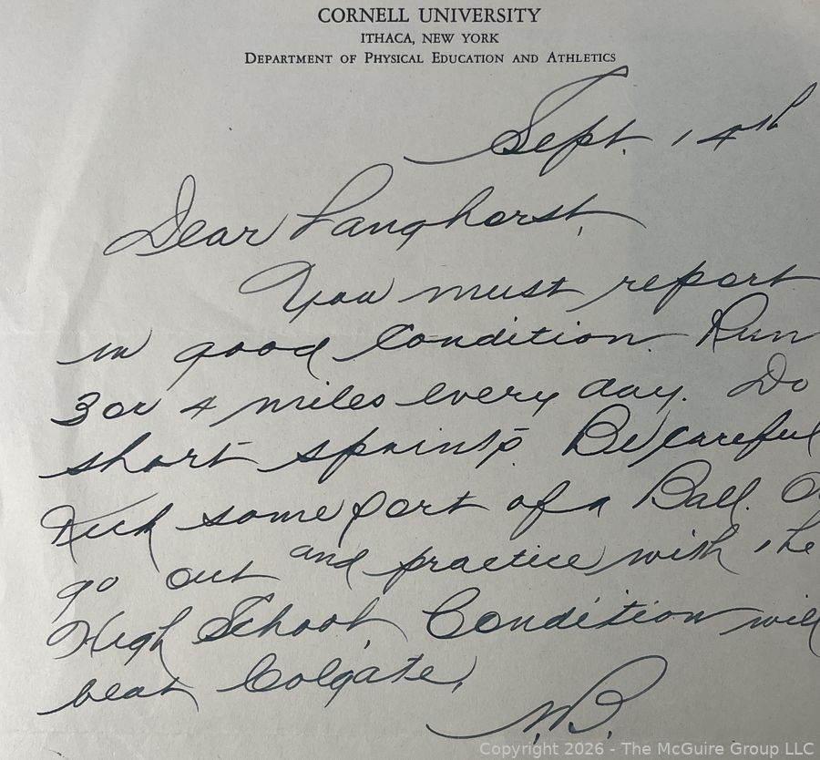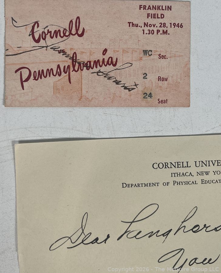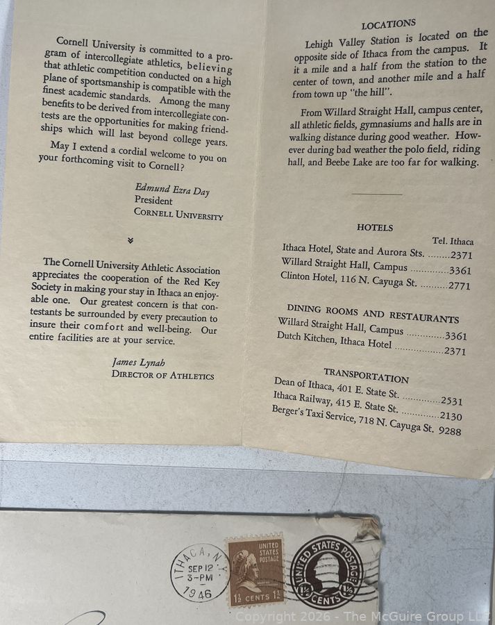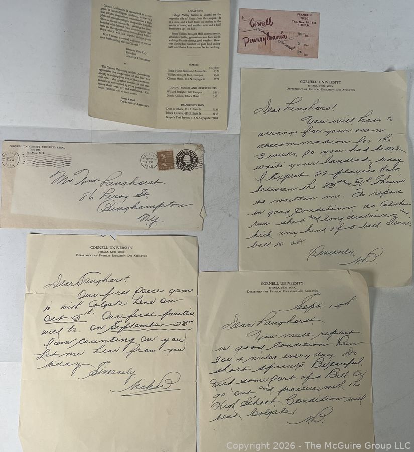 Lot #0290RH: 1946 Ephemera from Cornell University Including Letters From Football Coach to Incoming Freshman on Conditioning Methods Prior to Arrival.