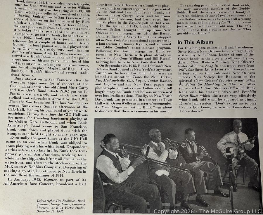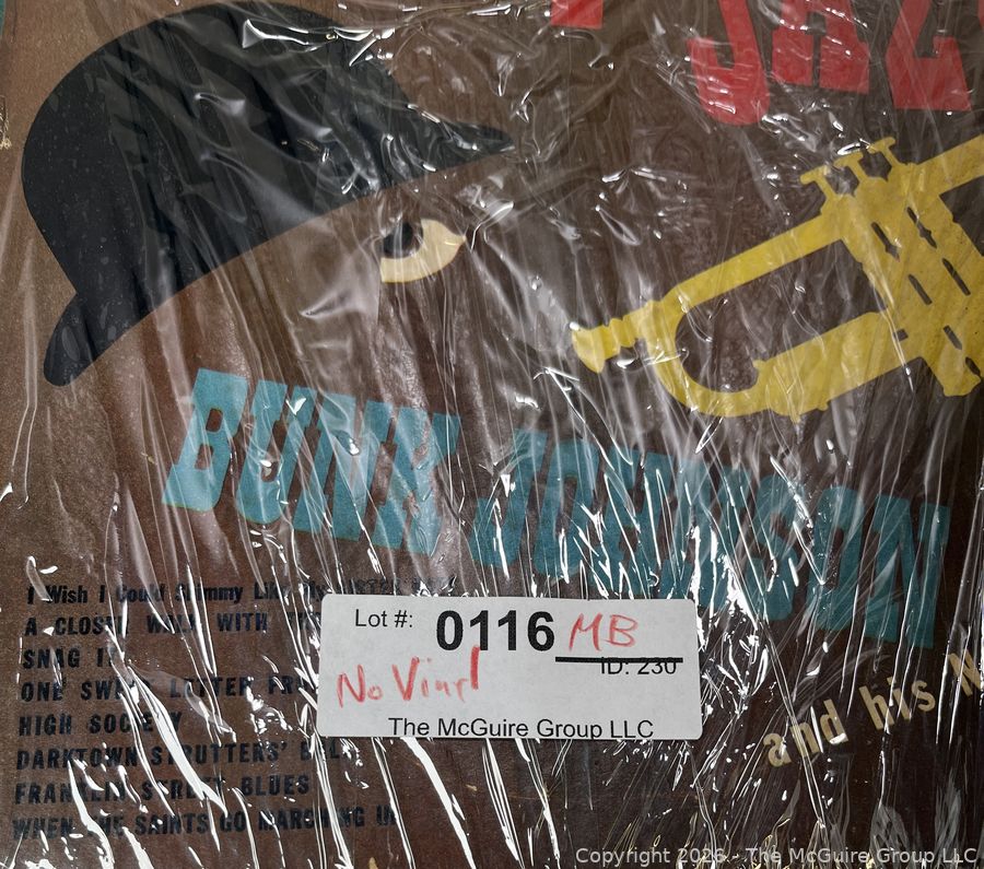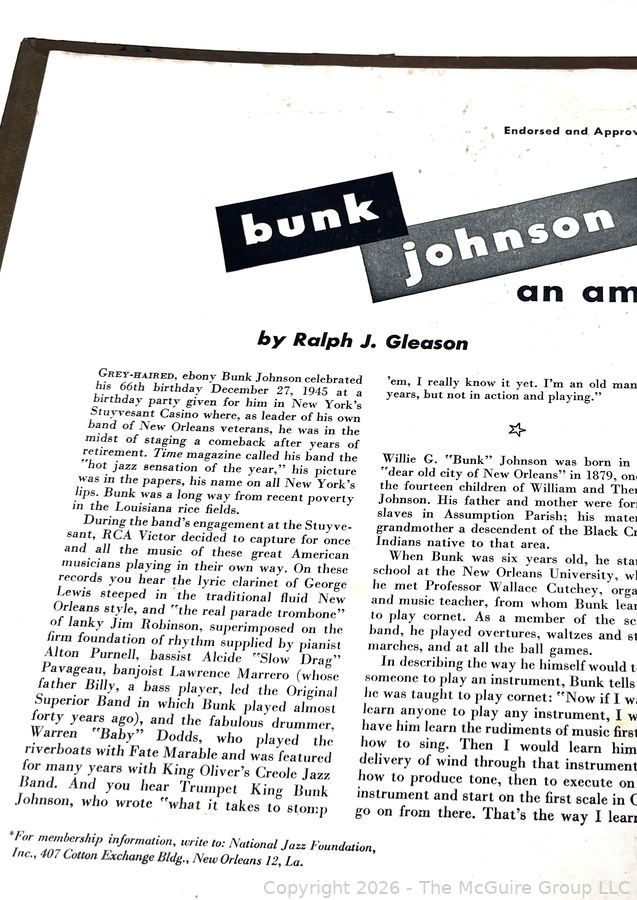 Lot #0116MB: 1946 Hat Jazz by Bunk Johnson and His New Orleans Band Vinyl LP Record Albums (Cover Only - No Vinyl)