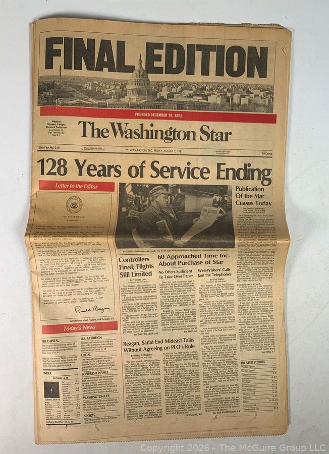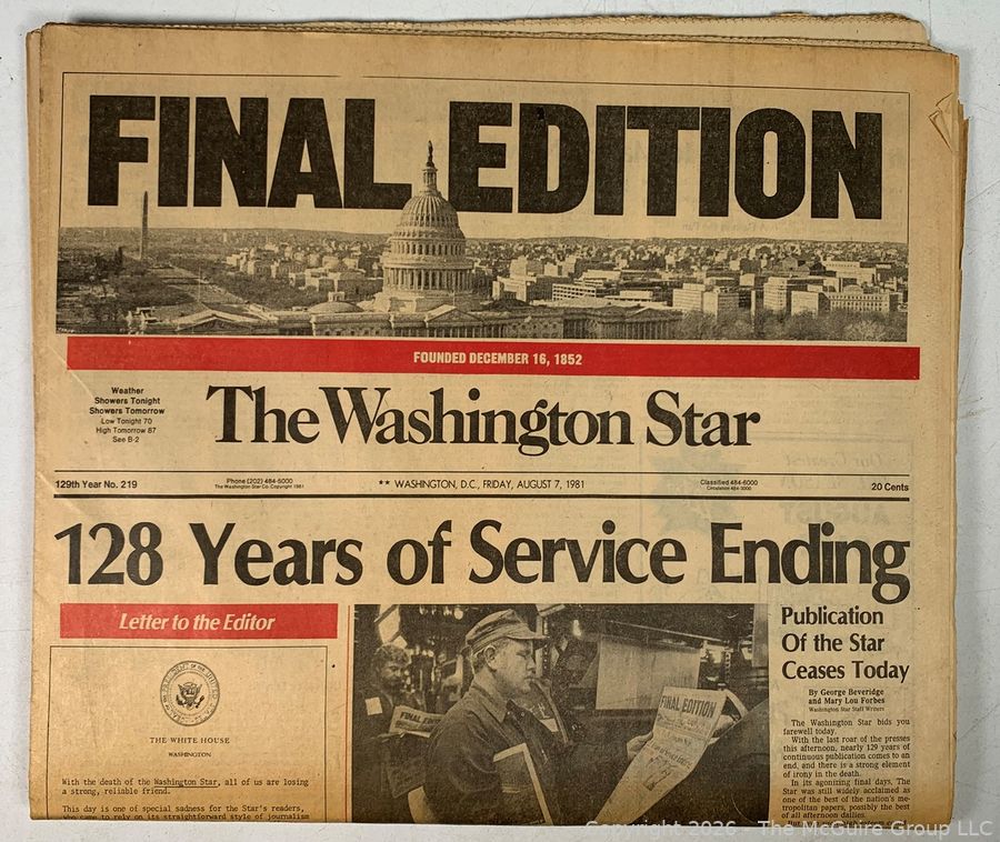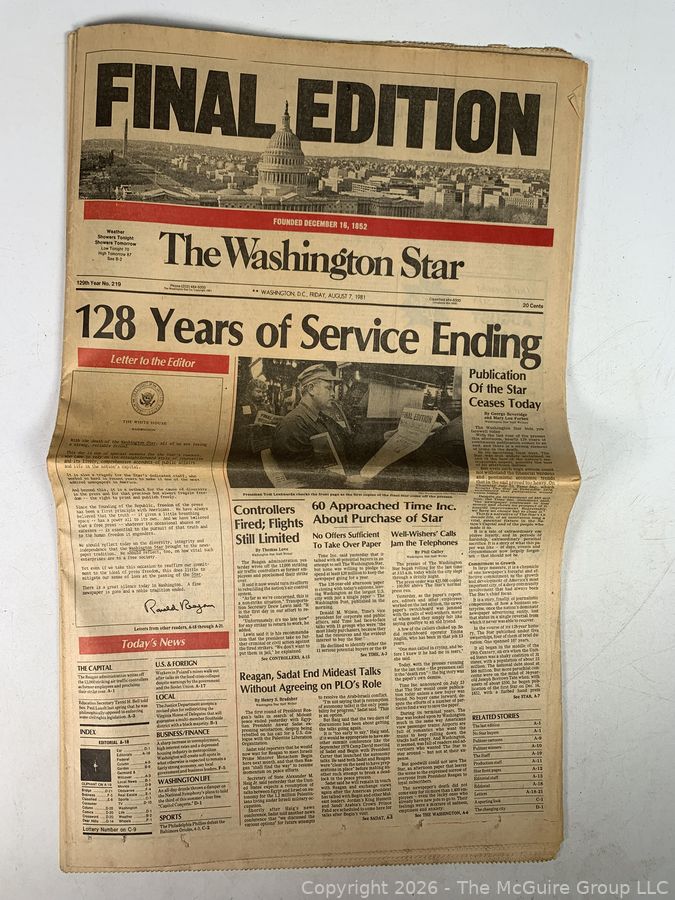 Lot #0312TL: 1981 Final Edition of The Washington Star Newspaper