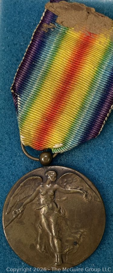 Lot #0038MB: Belgian World War I Inter-Allied Victory Medal 1914-1918 With Rainbow Pin Back Ribbon.
