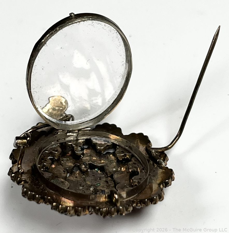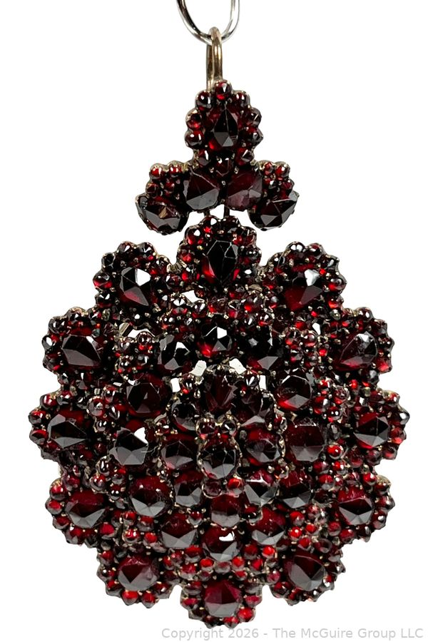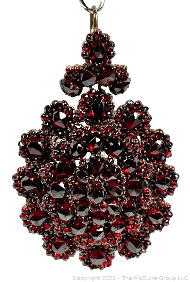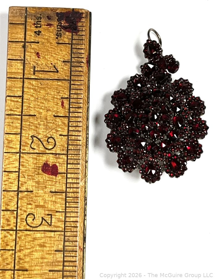 Lot #0027MB: Bohemian Garnet Glass Backed Gilt Silver Vermeil Locket Pendant
