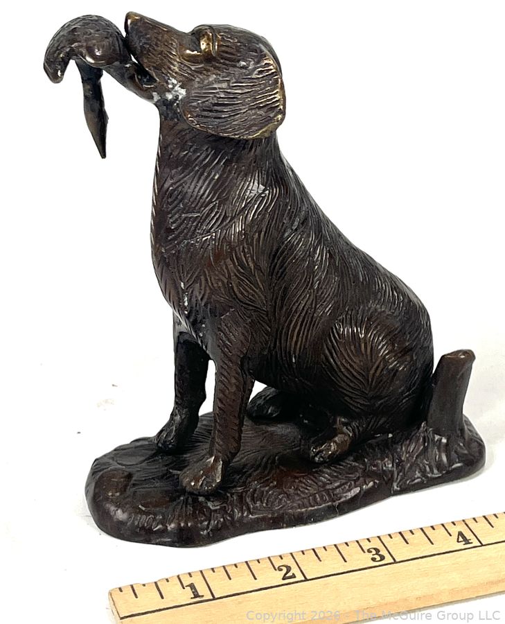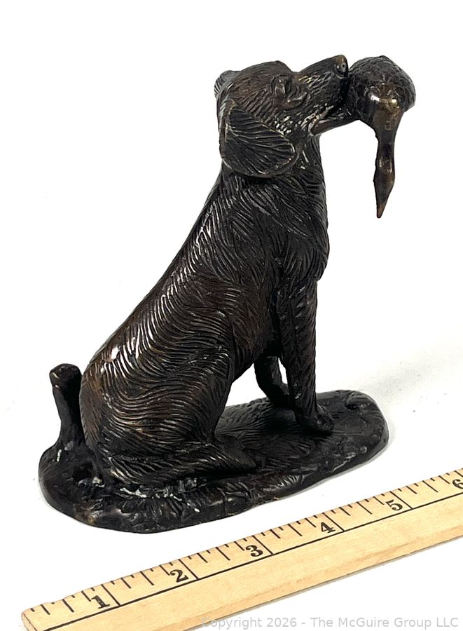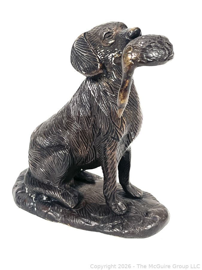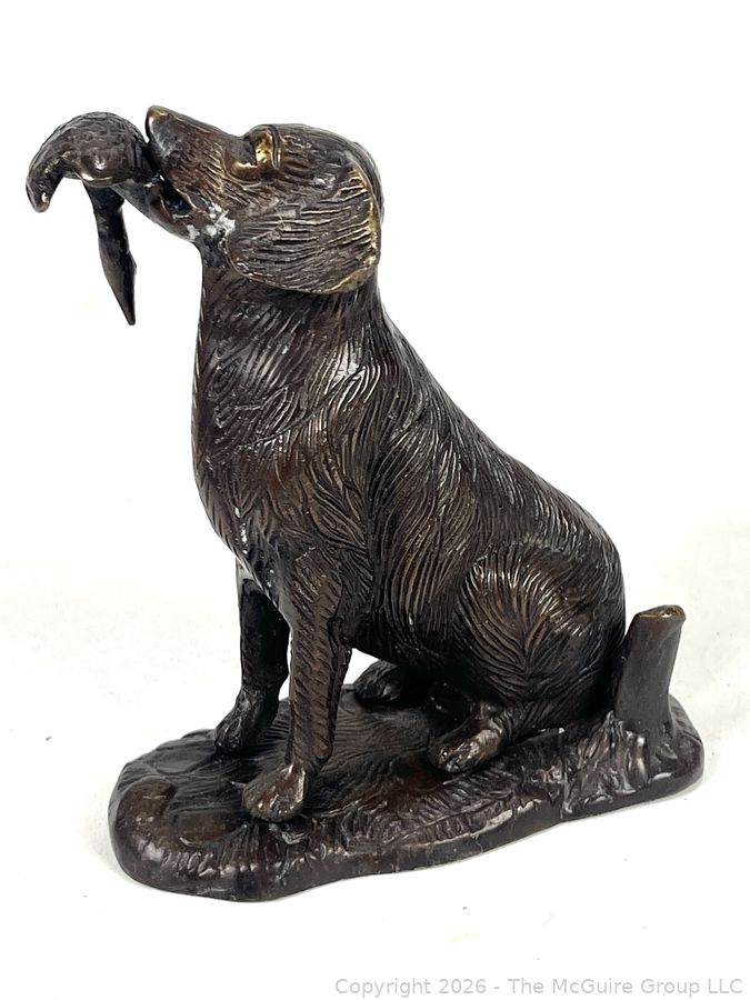 Lot #0042CP: Bronze Hunting Dog With Duck Bird In Mouth Sculpture
