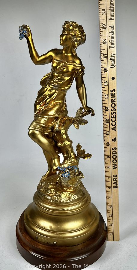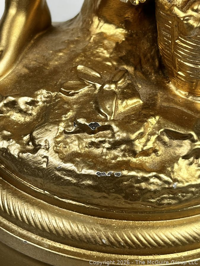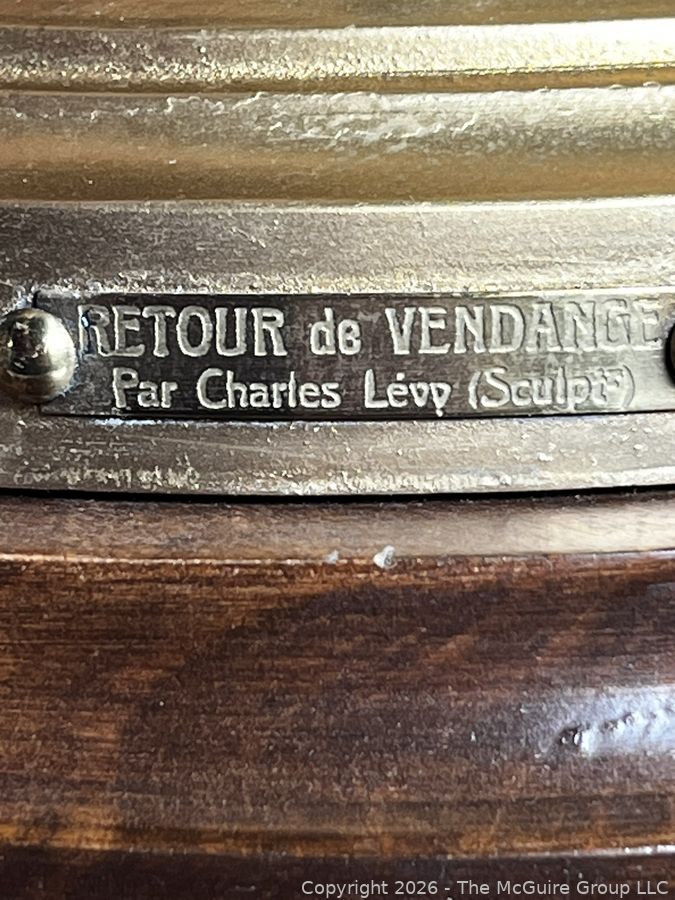 Lot #0242CPA: Cast Metal Statue of Return of the Harvest on Wood Base by Sculptor Charles Octave Levy (French, 1820-1899). Made in Paris.