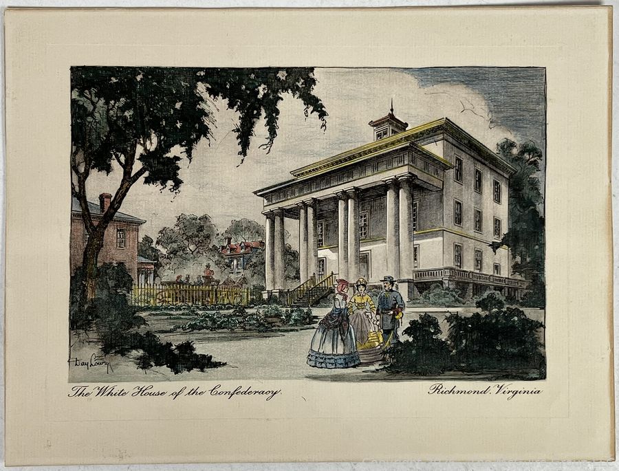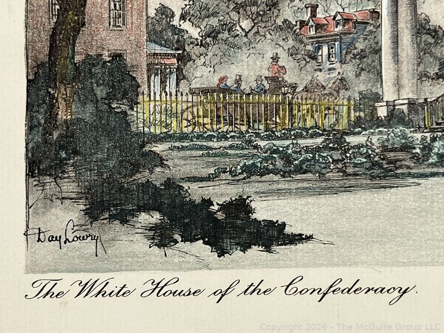Lot #0248CS: Colored Lithograph of The White House of the Confederacy by (Henry) Day Lowry, Richmond Artist/Painter. Garden Side View of the Home.