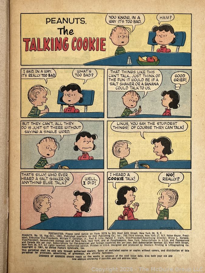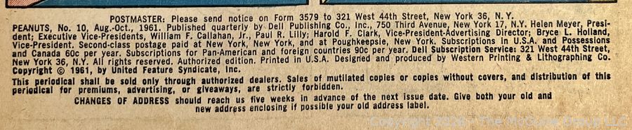 Lot #0055CP: Comic Book: PEANUTS No. 10, October 1961. Cover Art by Charles M. Schulz. Dell Publishing Co.