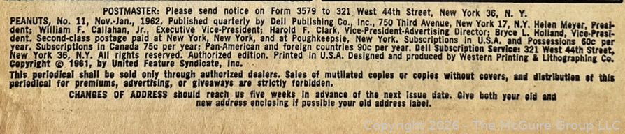 Lot #0127CP: Comic Book: PEANUTS No. 11, Nov.-Jan. 1962. Dell Publishing Co.