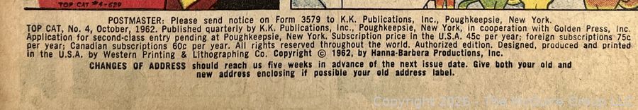 Lot #0220CP: Comic Book: Top Cat, No. 4. K.K. Publications Inc., October 1962.