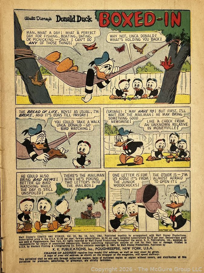 Lot #0301CP: Comic Book: Walt Disney's Comics and Stories, Vol. 21 No. 10. Walt Disney Productions, July 1961.