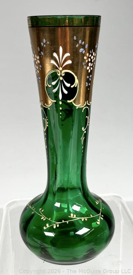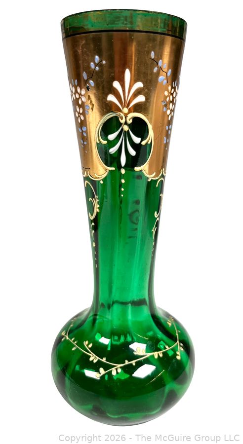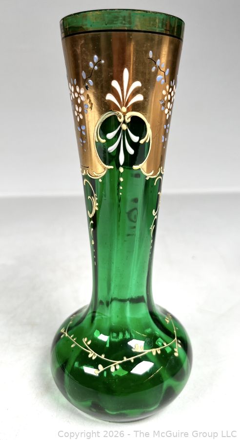 Lot #0171MB: Czech Bohemian Gilt and Green Glass Bud Vase